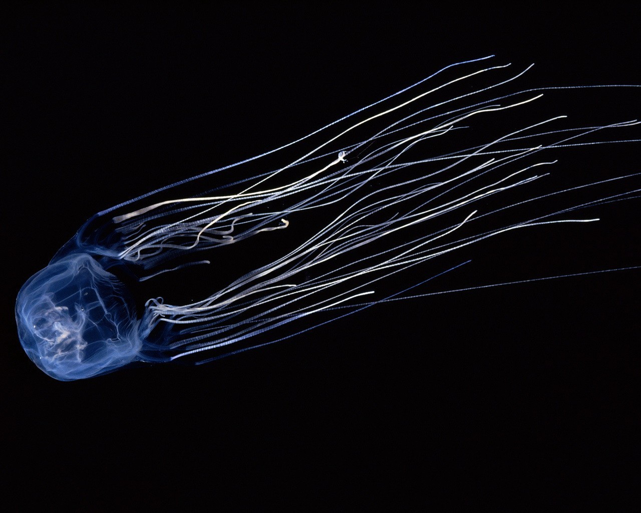 Méduse flotte sur fond noir - fond d'écran de bureau