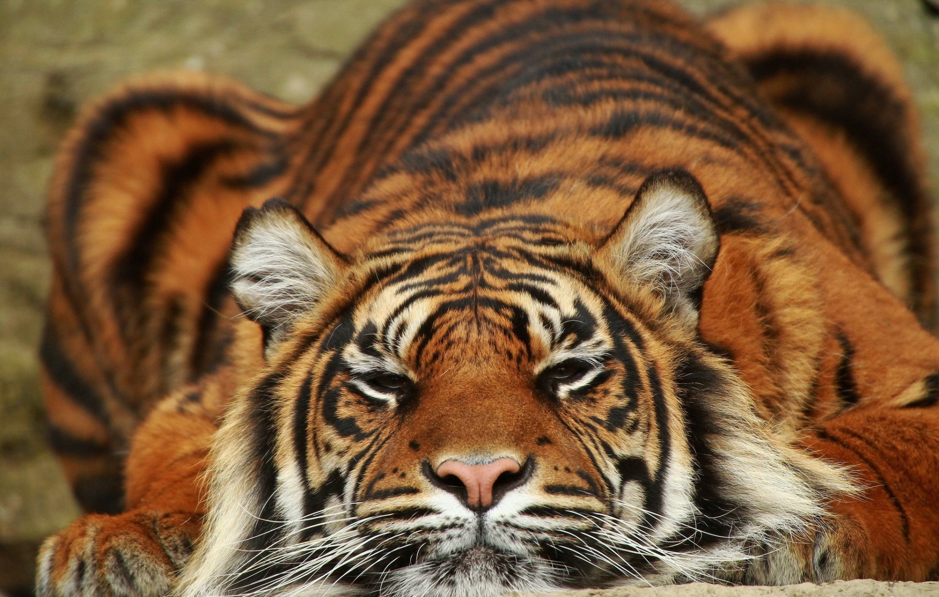 Le tigre dort tranquillement sous les rayons du soleil - fond d'écran de téléphone