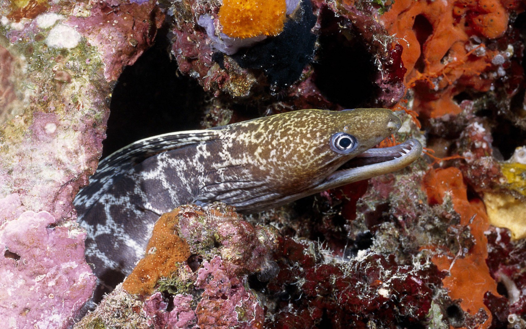 murène embuscade corail