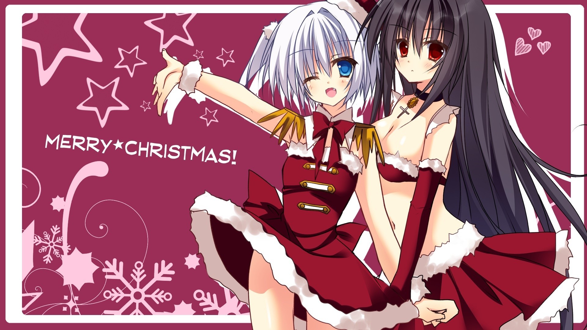 Tags:cheveux courts, clin d'oeil, bikini, rougir, arc, cheveux longs, 2girls, col, fang