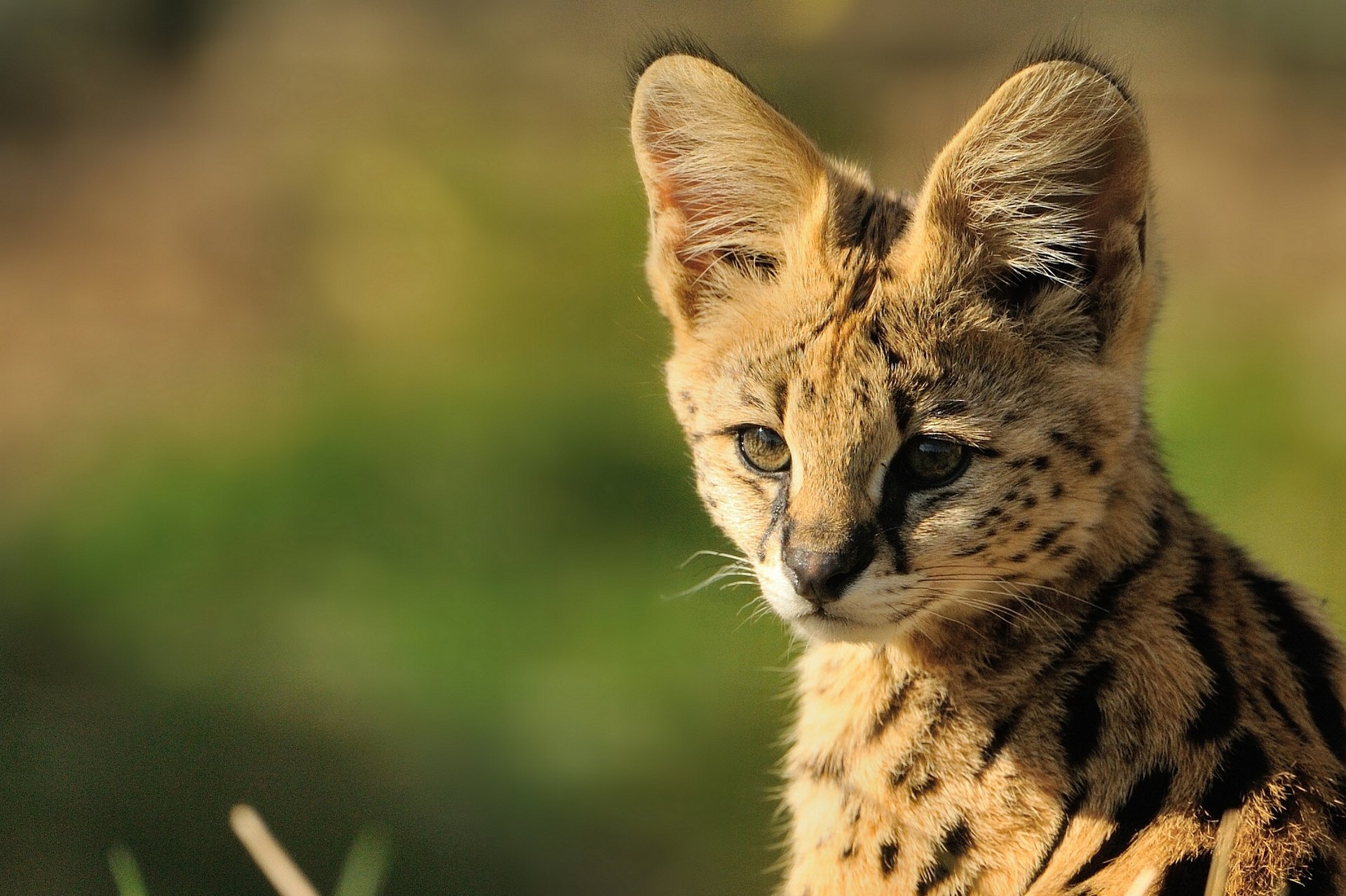 Petit prédateur Serval sur fond vert - fond d'écran de bureau
