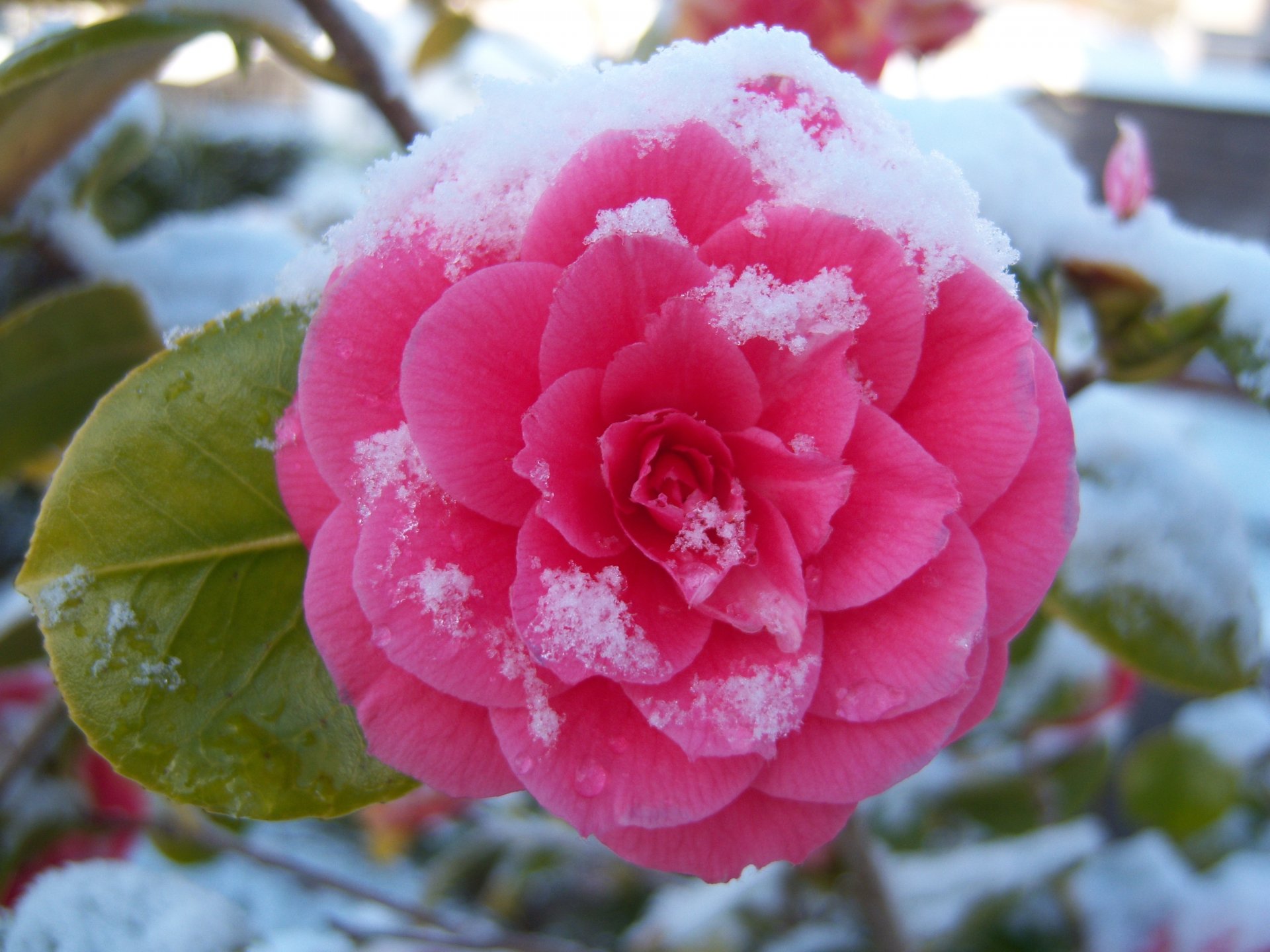 Camélia sous la neige, un miracle des merveilles - fond d'écran de téléphone