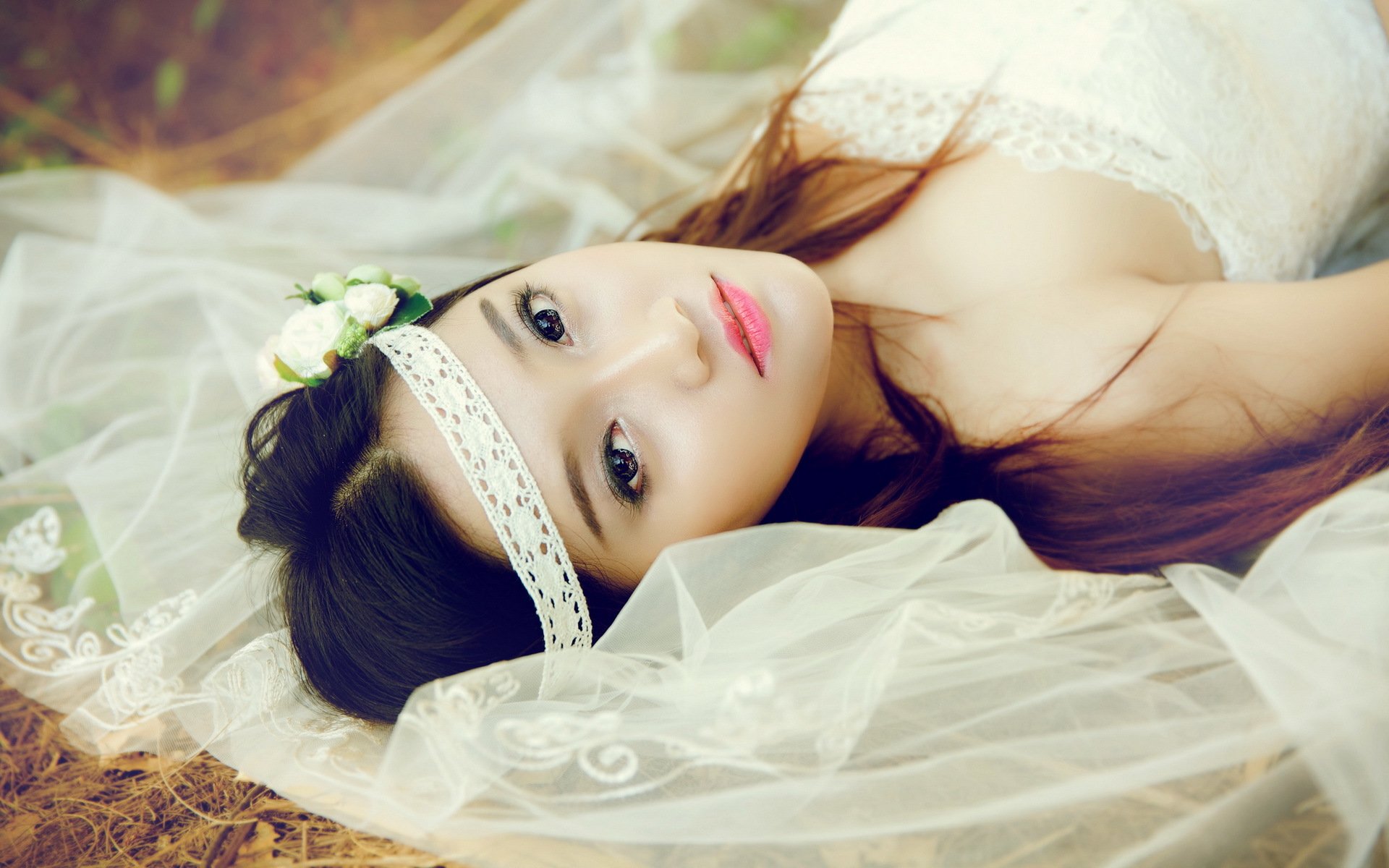 Belle fille asiatique en blanc - fond d'écran de téléphone
