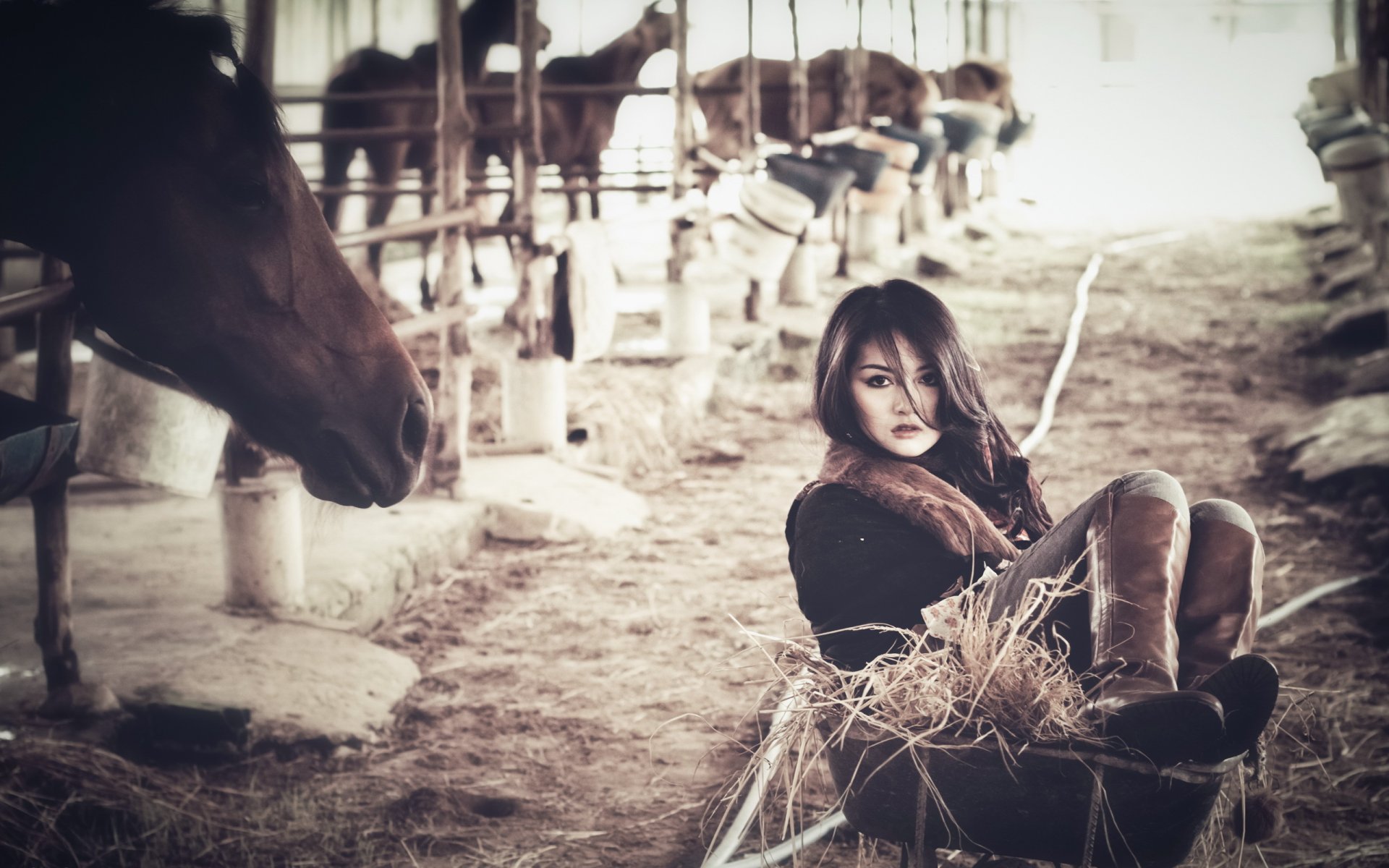 Photoshoot fille dans l écurie - fond d'écran de téléphone