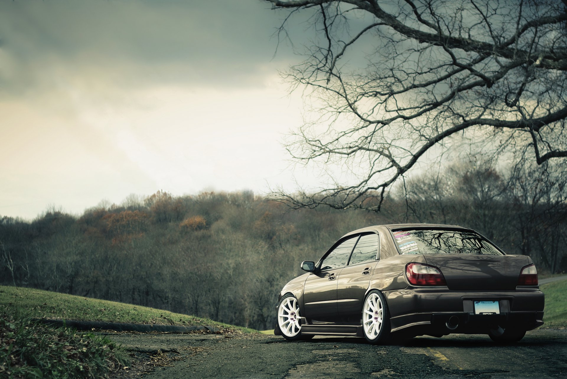 Voiture subaru sur fond de nature automnale - fond d'écran de téléphone