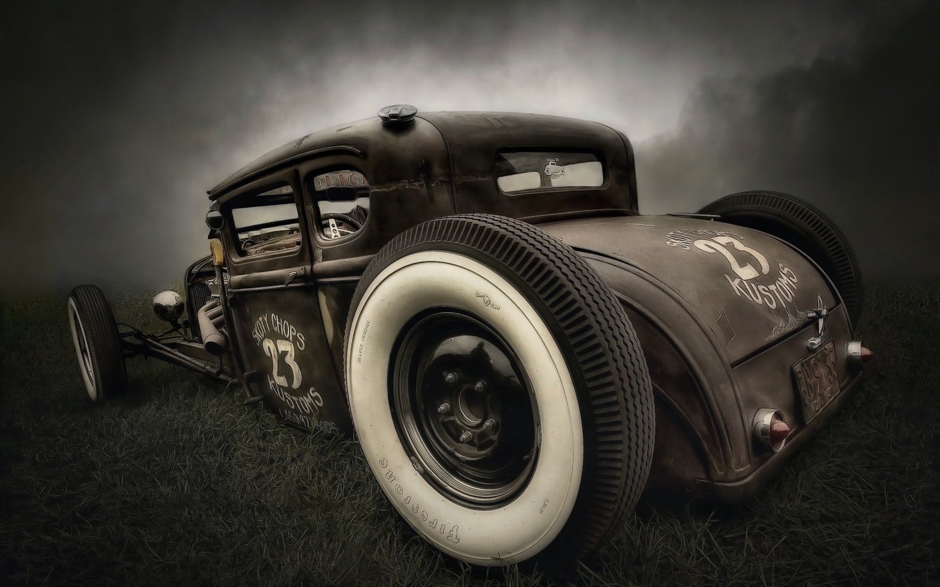Voiture Vintage dans un parc sombre - fond d'écran de téléphone