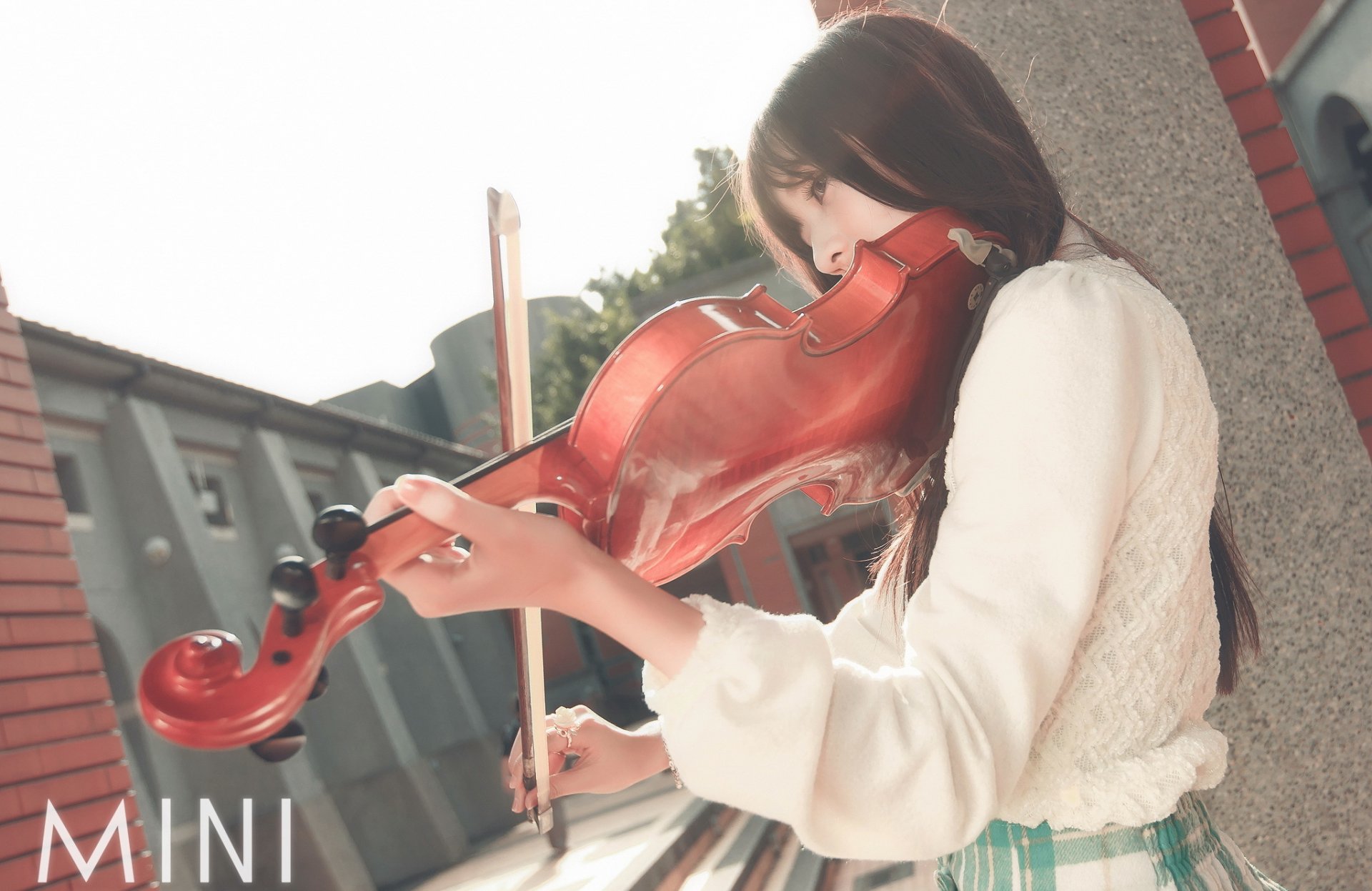 Fille aux cheveux longs joue du violon - fond d'écran de téléphone