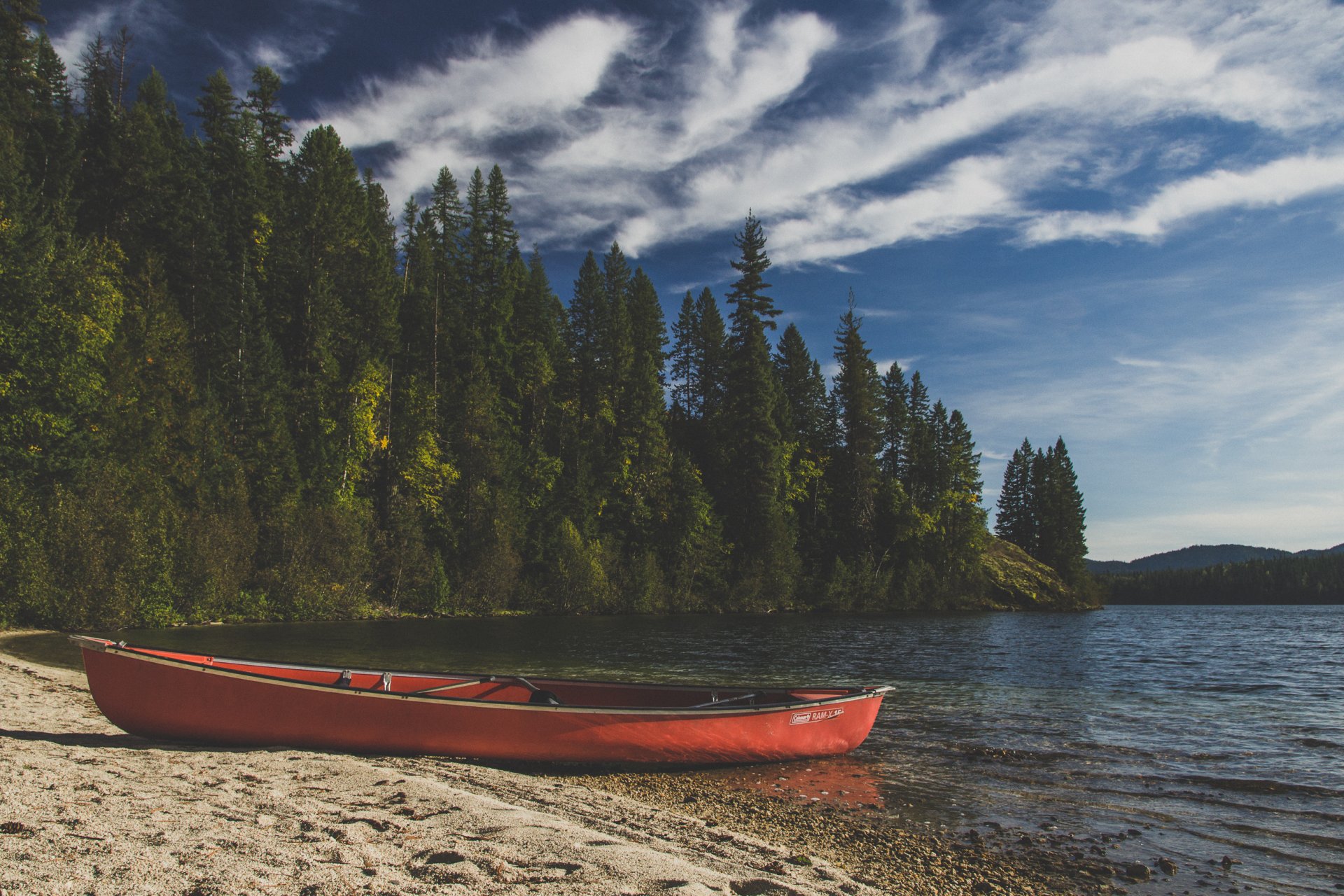 Bateau rouge sur la plage de sable - fond d'écran de bureau