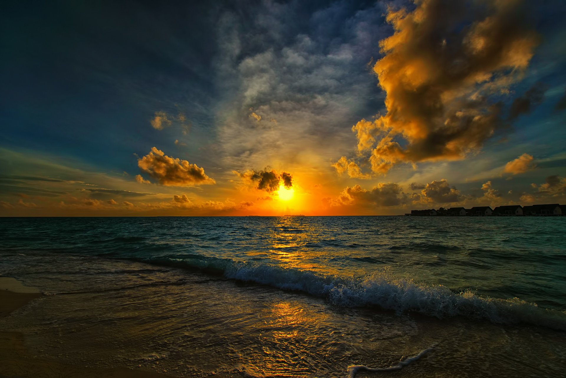 Mer du soir du golfe pittoresque - fond d'écran de bureau