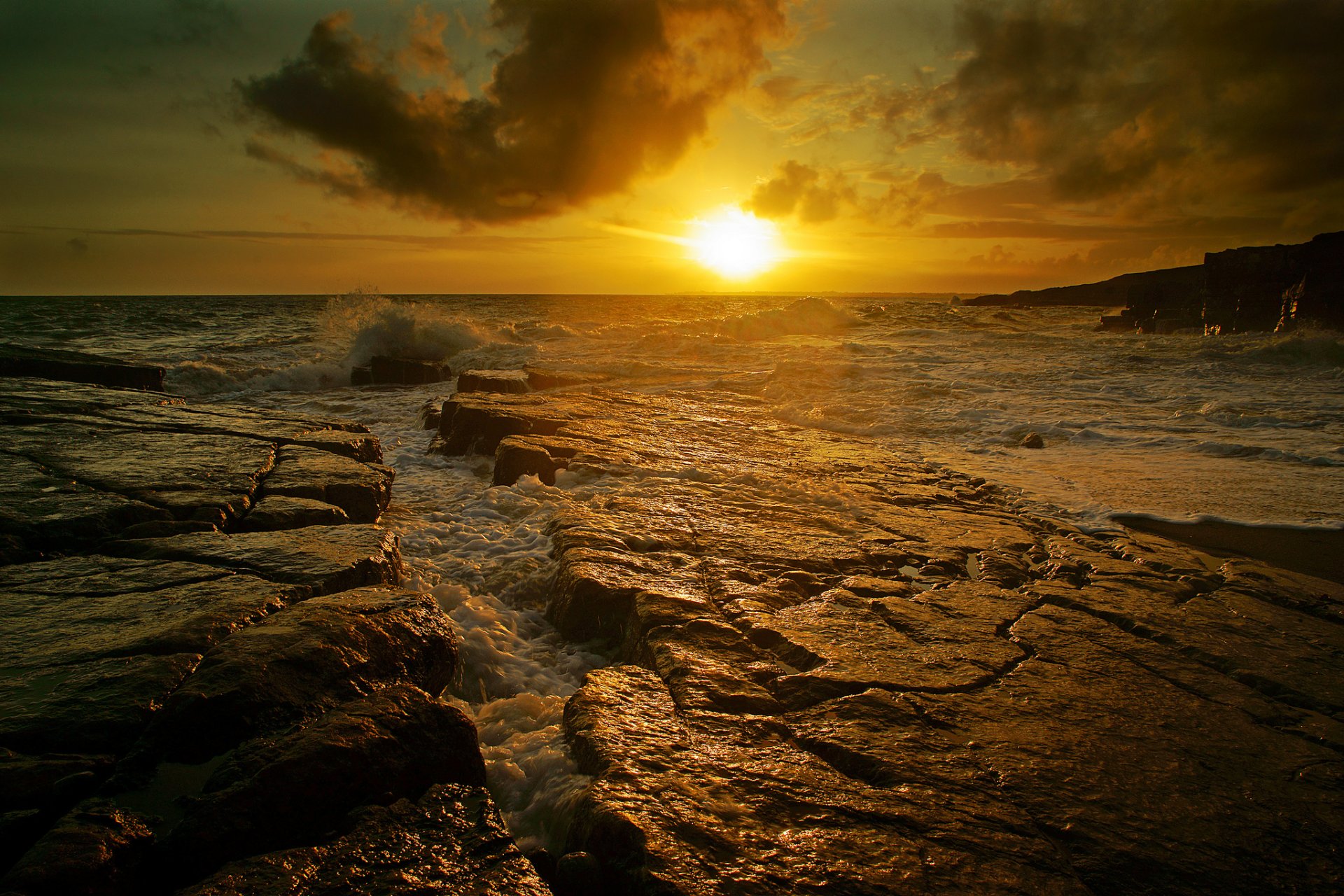 Ciel coucher de soleil sur fond de bord de mer - fond d'écran de téléphone