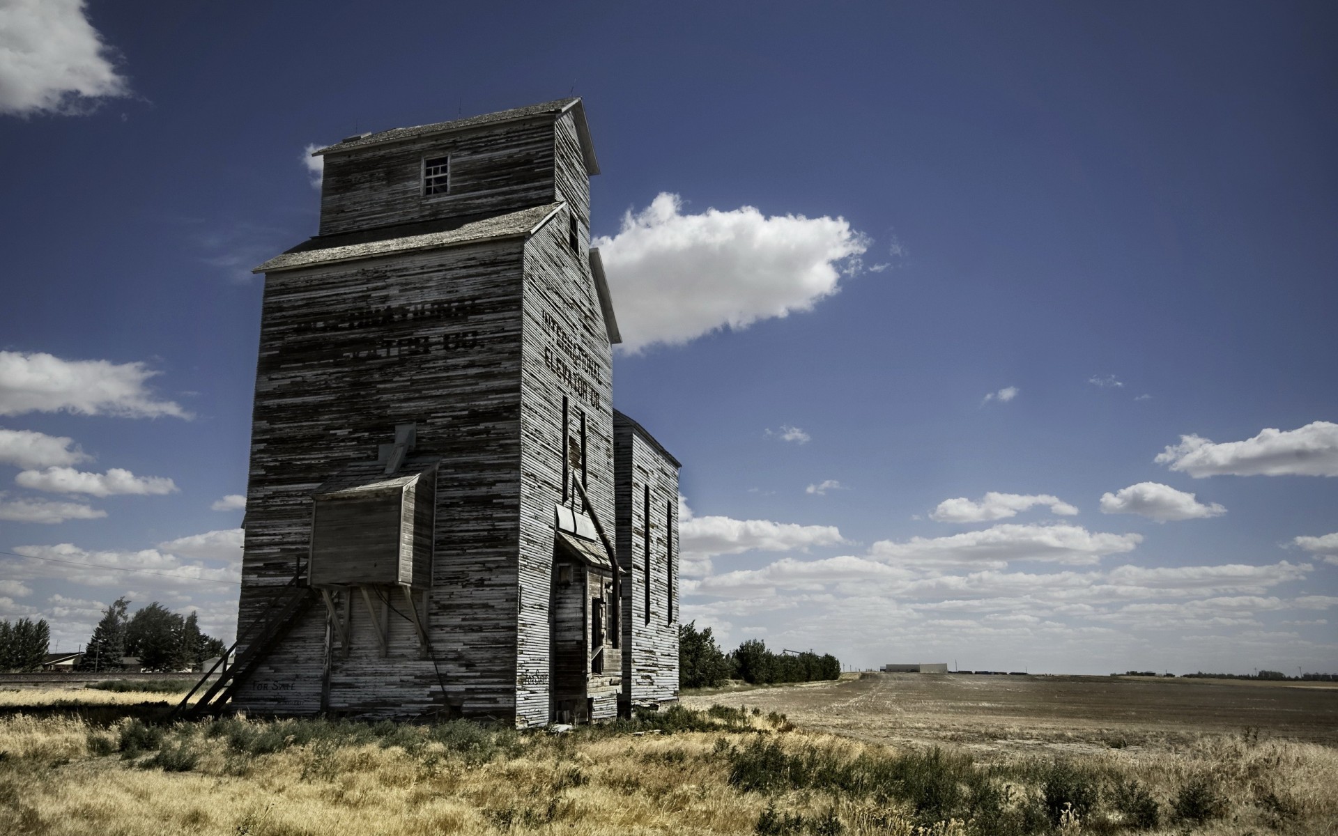 Tags:champ, nuages, bâtiment, grange
