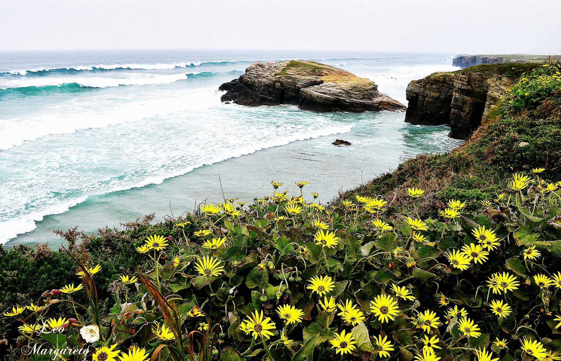 Tags:lion margareto, côte, fleurs, mer, vagues