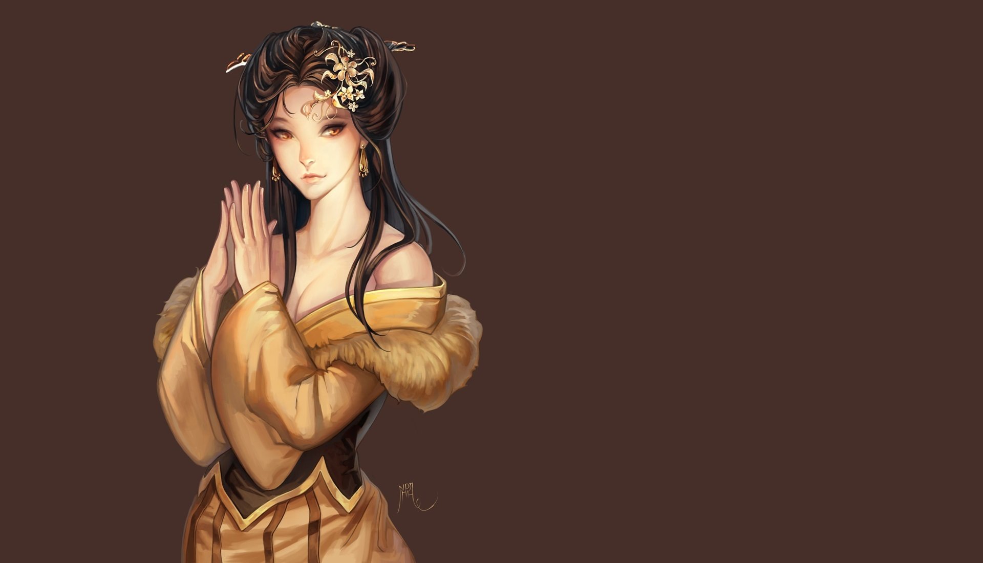 Fille en kimono regard mystérieux - fond d'écran de bureau