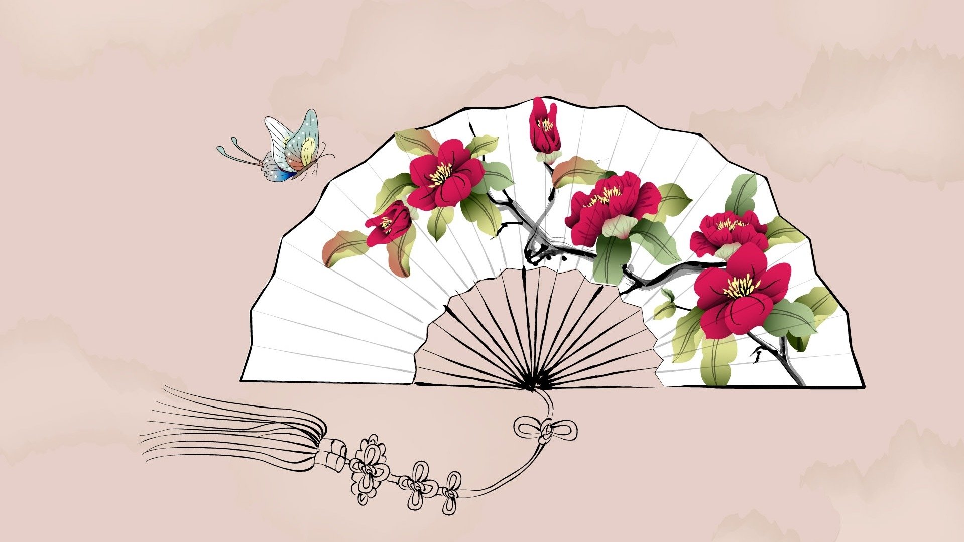 Éventail peint à l aquarelle - fond d'écran de bureau