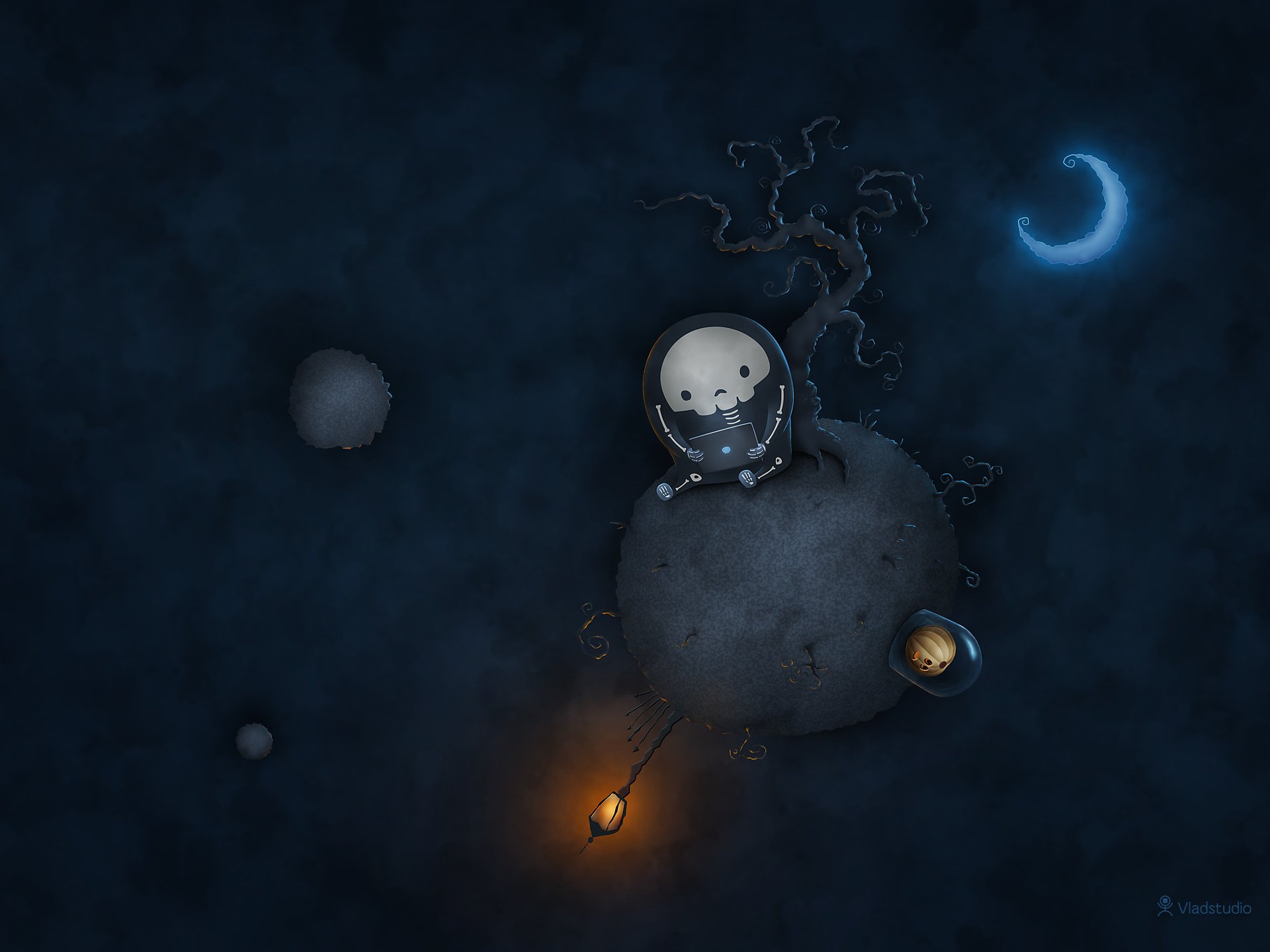 Carte postale avec Halloween sur fond noir avec un lièvre