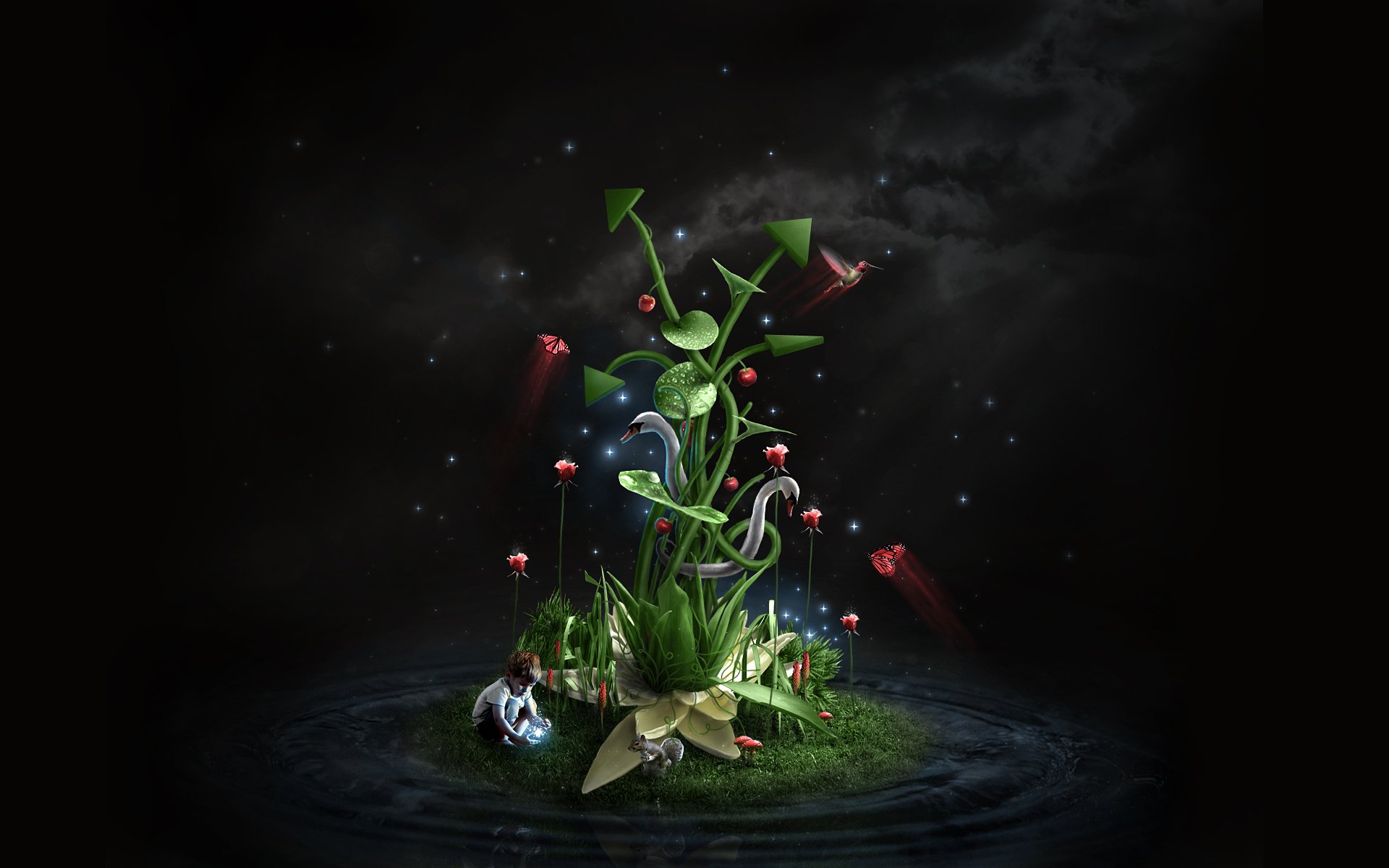 Fées lucioles rouges et les papillons jouent avec le bébé