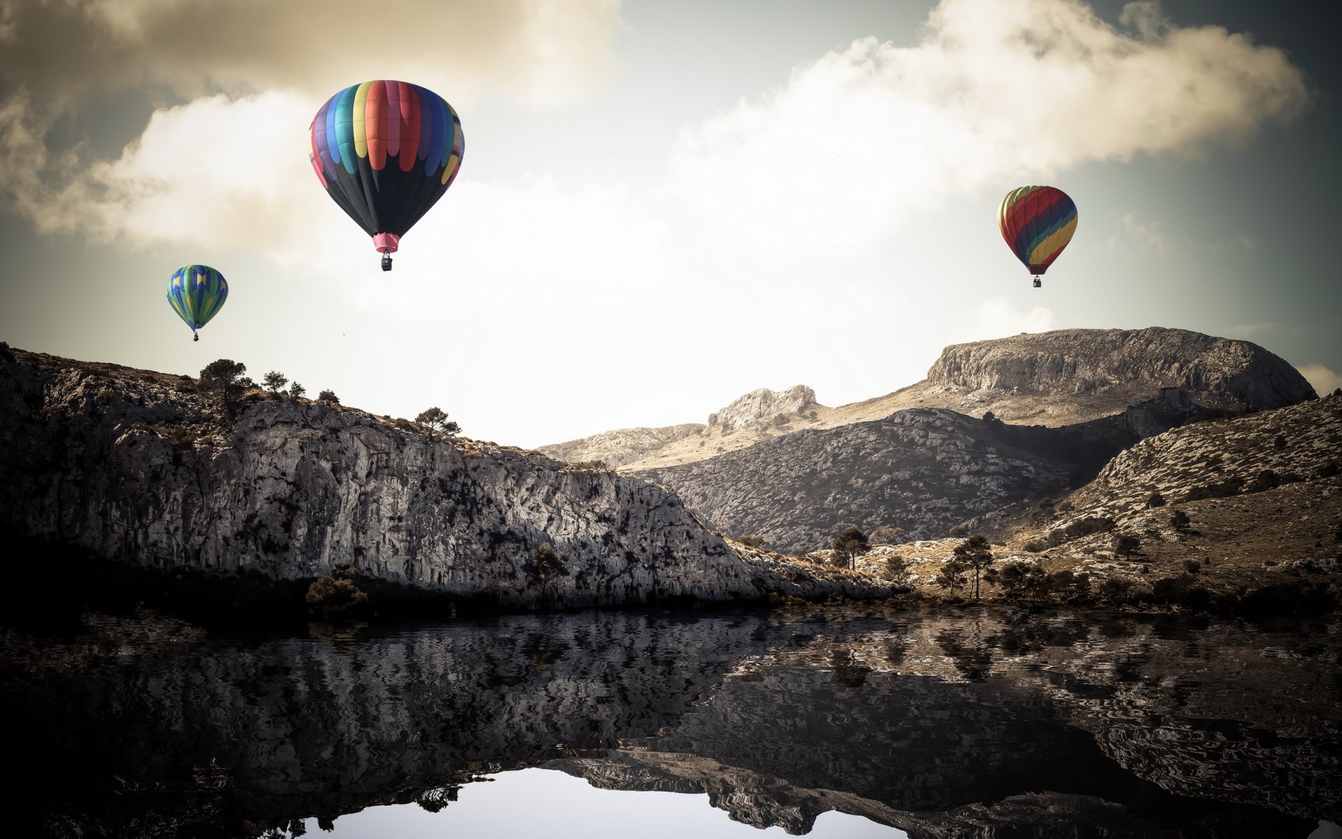 Ballons sur fond de montagnes - fond d'écran de bureau