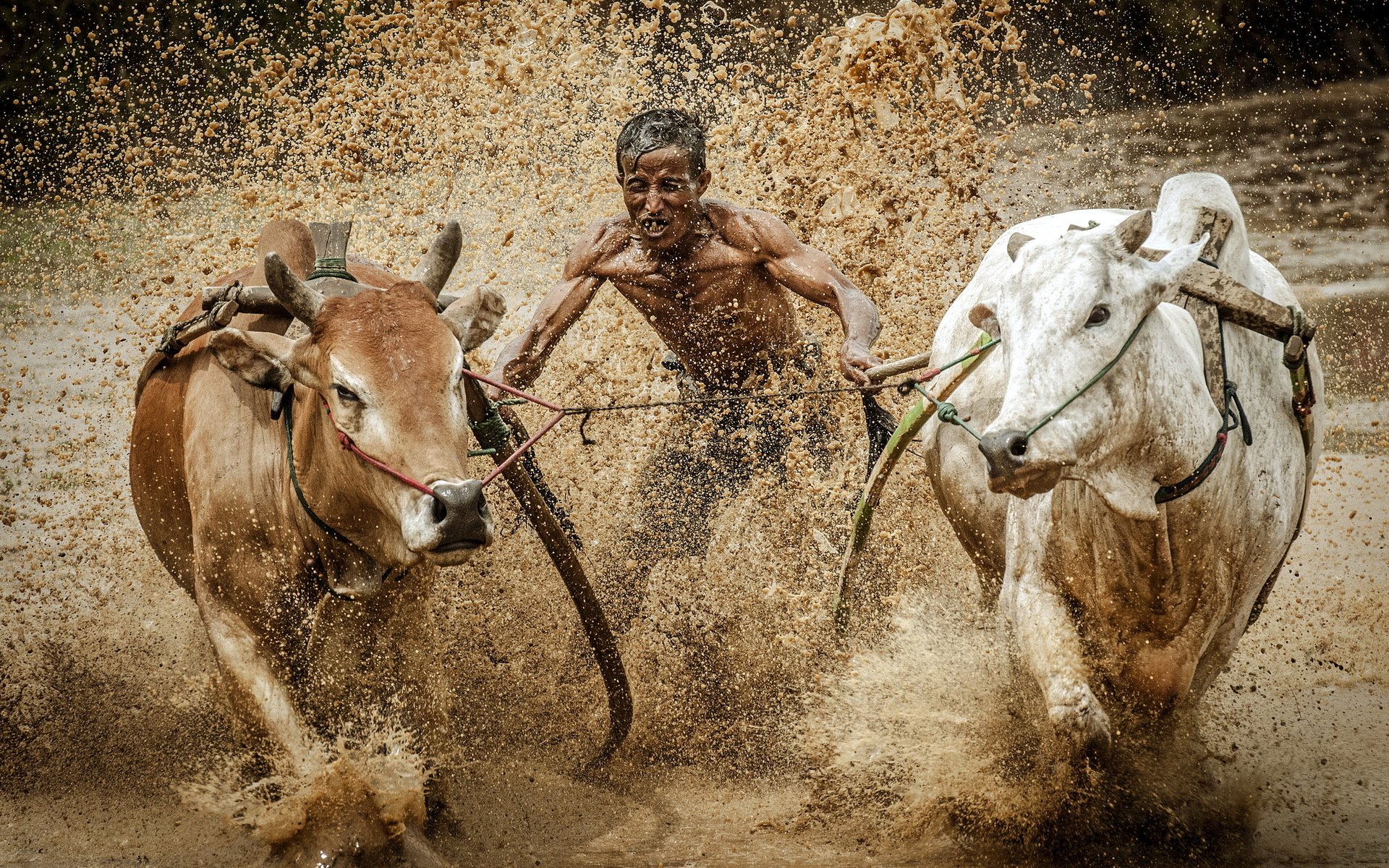 L homme et les taureaux dans la boue - fond d'écran de téléphone