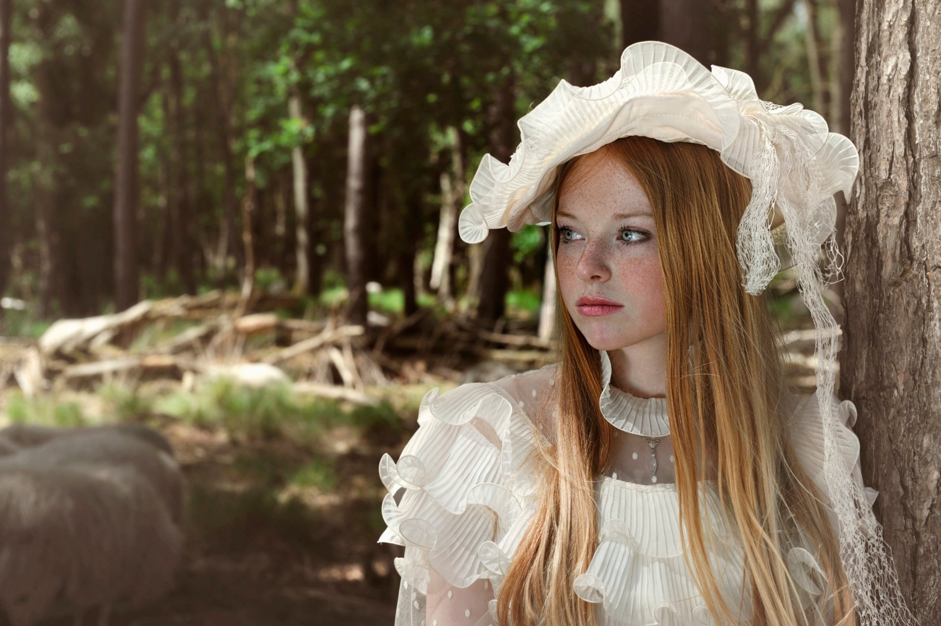 Blonde au chapeau. Forêt. Été - fond d'écran de téléphone