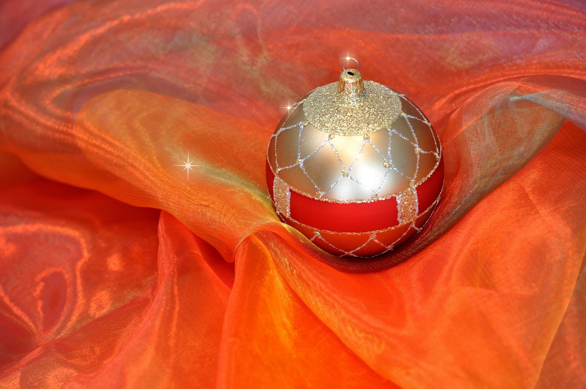 Boule de Noël sur tissu orange