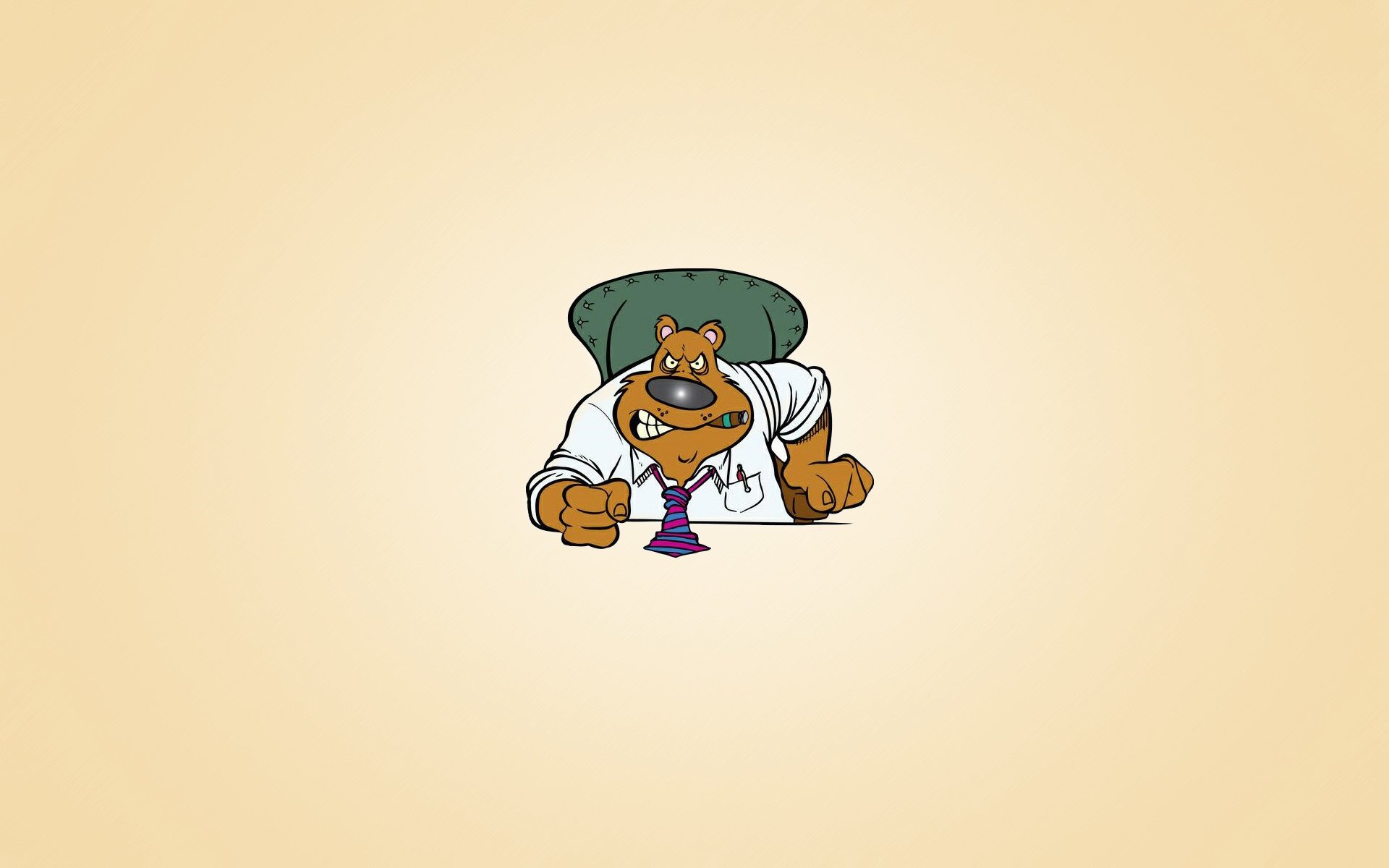 Méchant ours patron avec cigare coups de poing assis sur une chaise