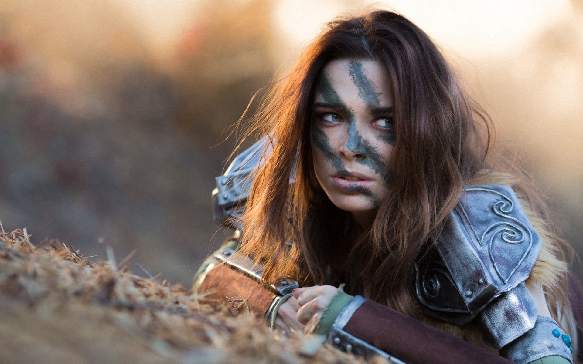 Cosplay aux cheveux noirs en armure d'acier