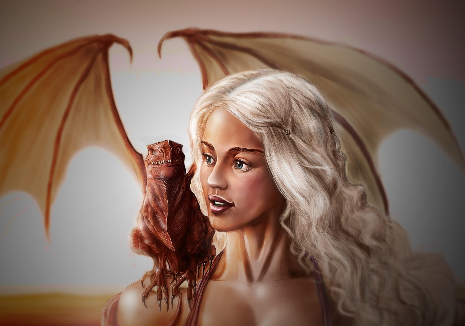 Blonde avec une créature fabuleuse avec des ailes sur son épaule