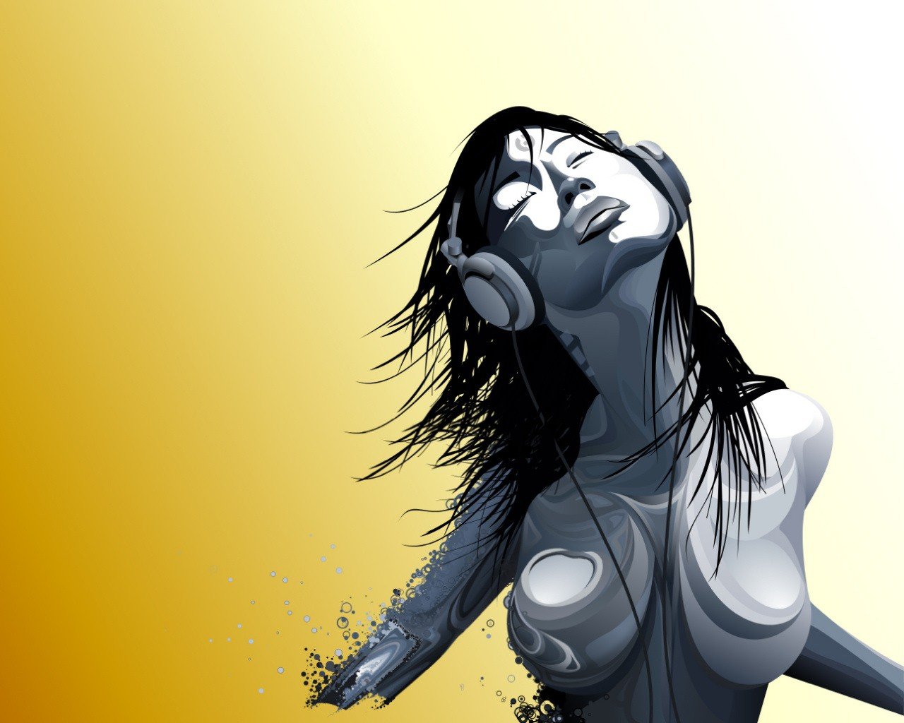 La mort avec une tresse à la pause écoute de la musique du magnétophone