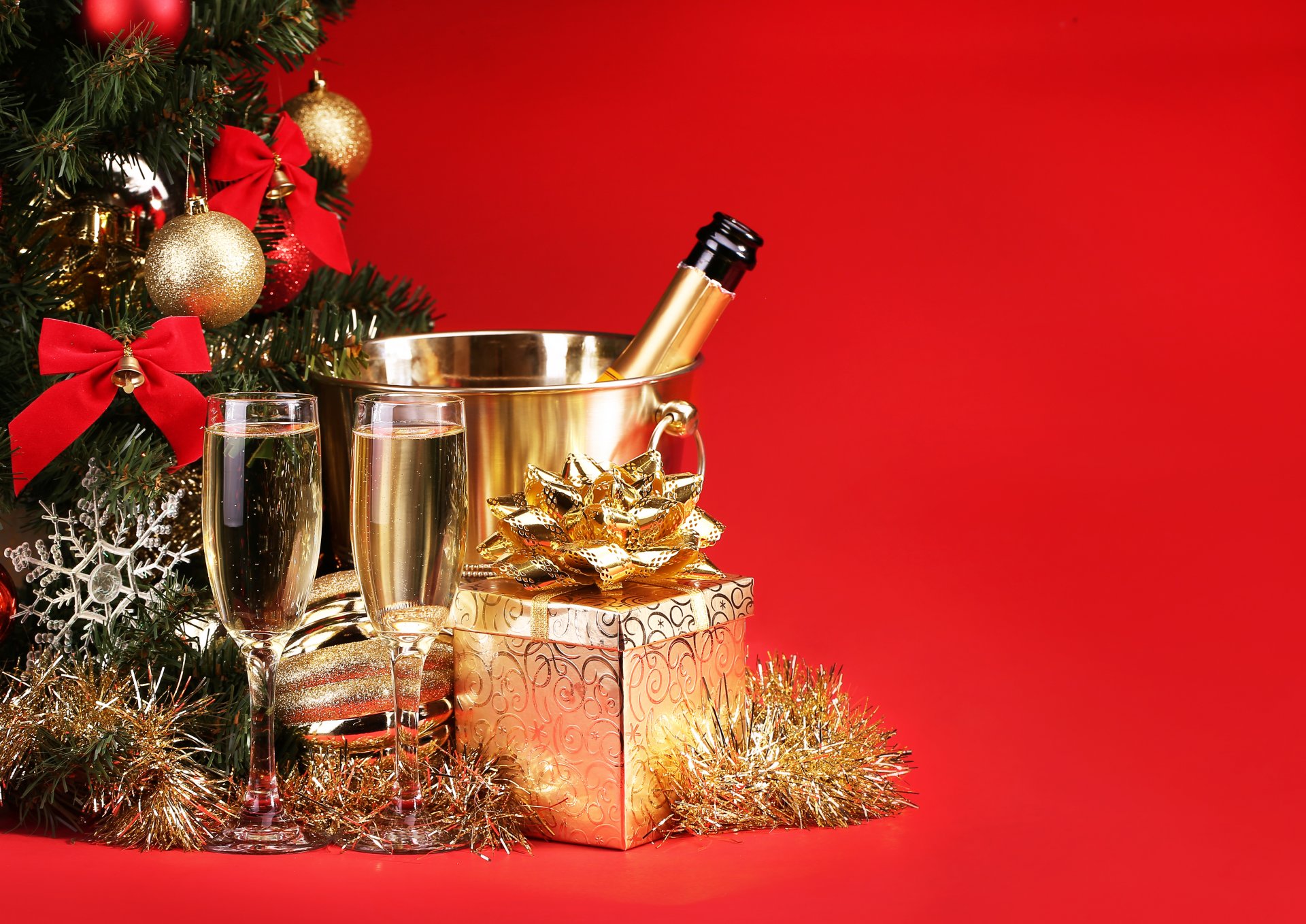 Décorations pour le nouvel an sur un comptoir en boisDécorations pour le nouvel an sur un comptoir en bois