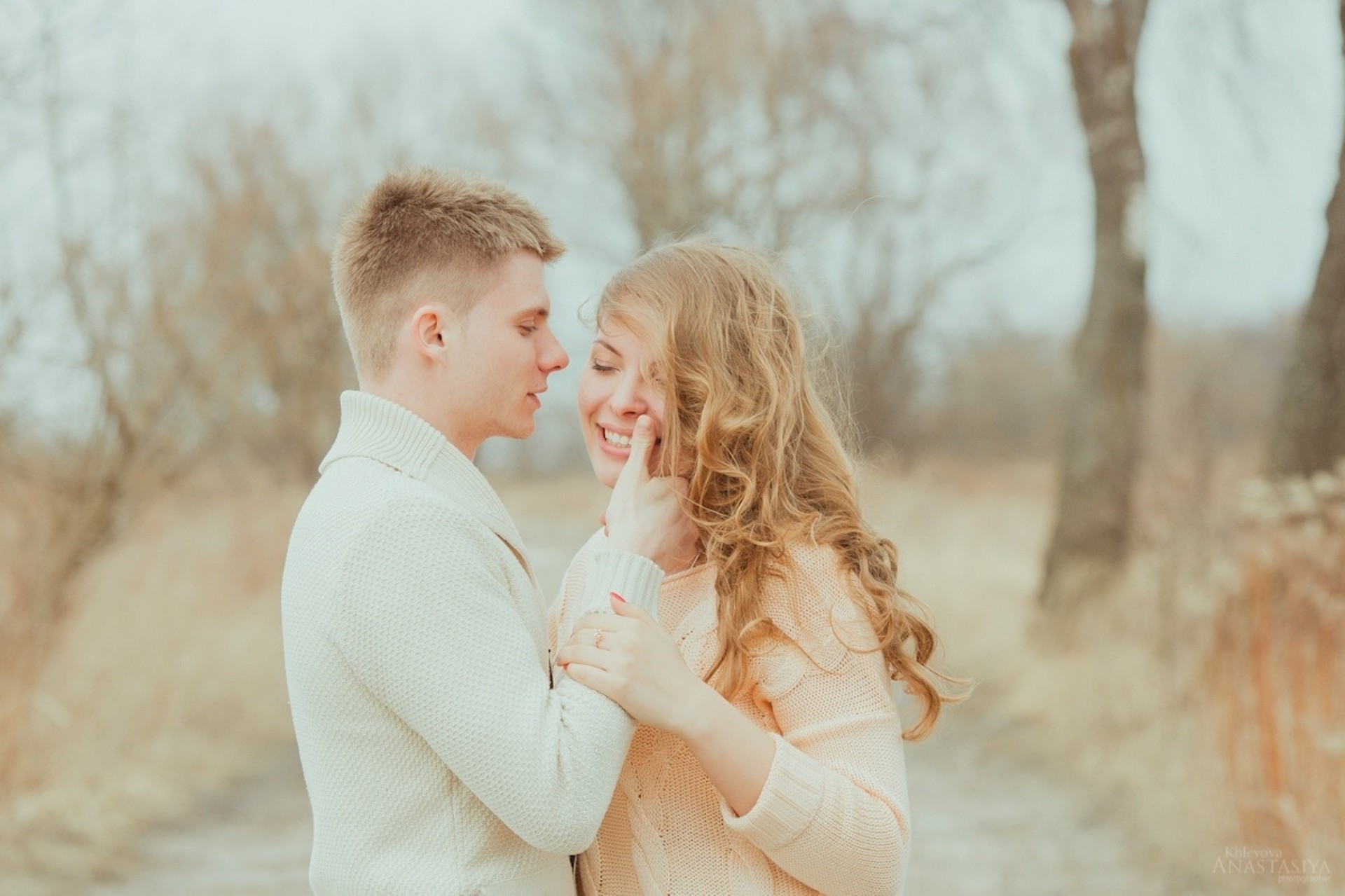 Jeune couple dans la forêt d'automne avec une Couronne de feuilles d'érable
