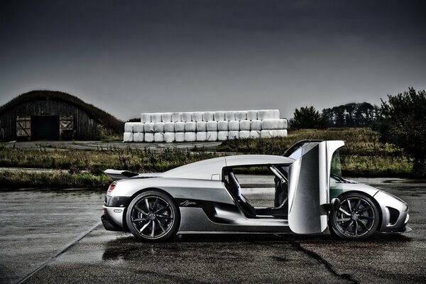 Noir supercar ferrari 458 sur l'asphalte vue latérale