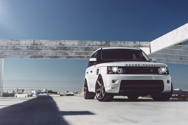 Voiture rétro beige sur asphalte sur fond de vieux hangar en métal