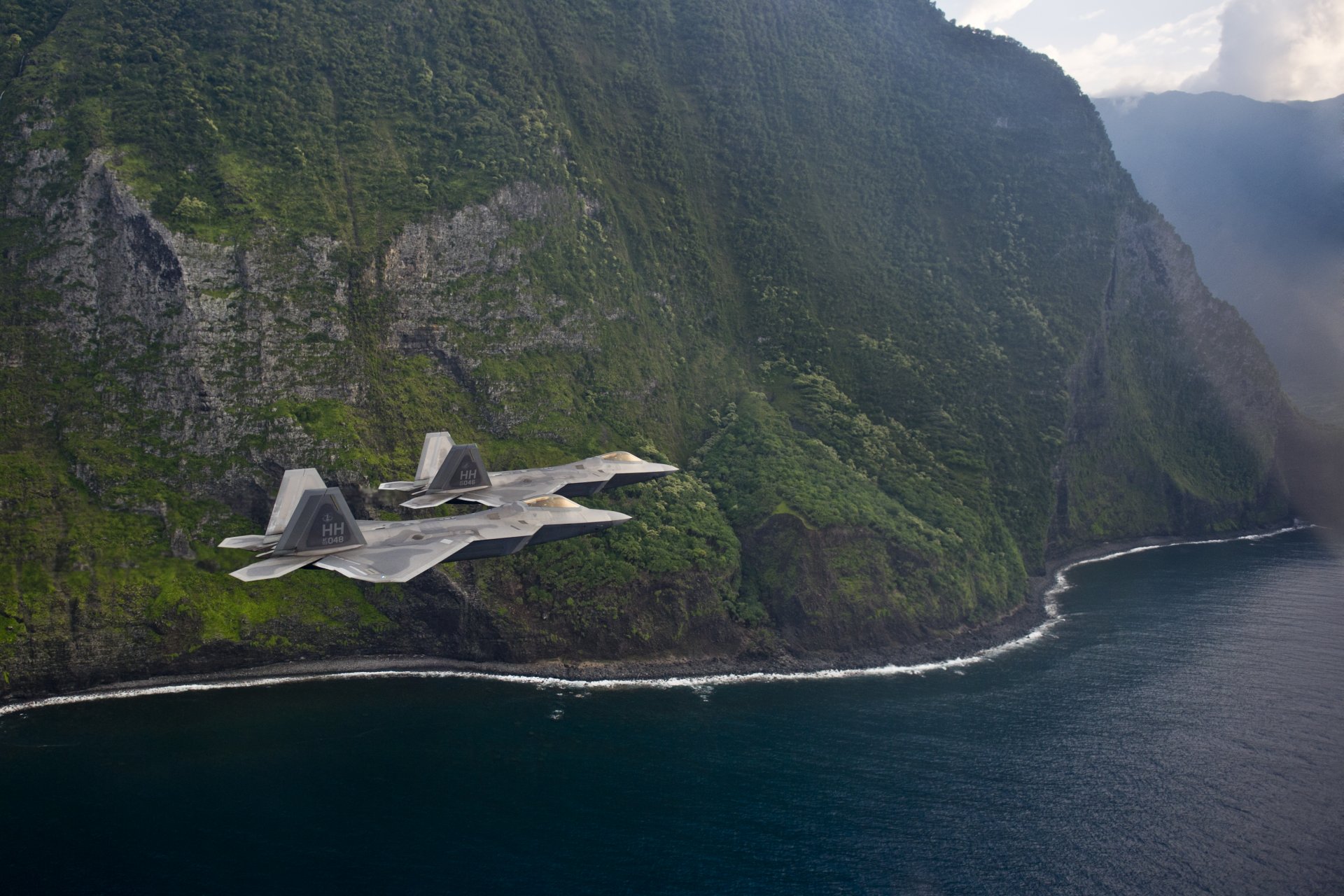 Vol d'un avion de chasse raptor f-22 au large des côtes