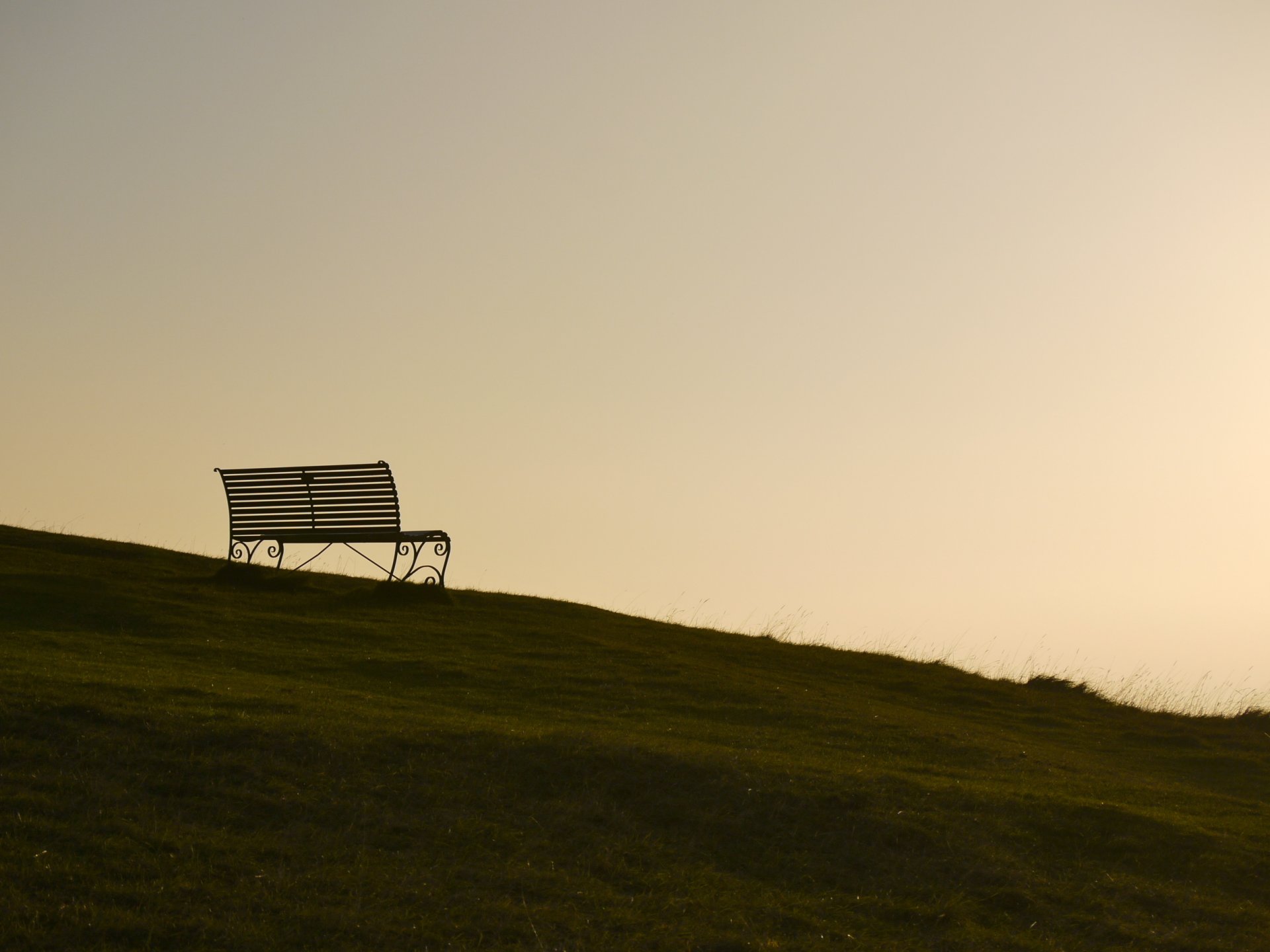 Dessin animé d'un gars et une fille assise sur un banc en face d'un ciel étoilé