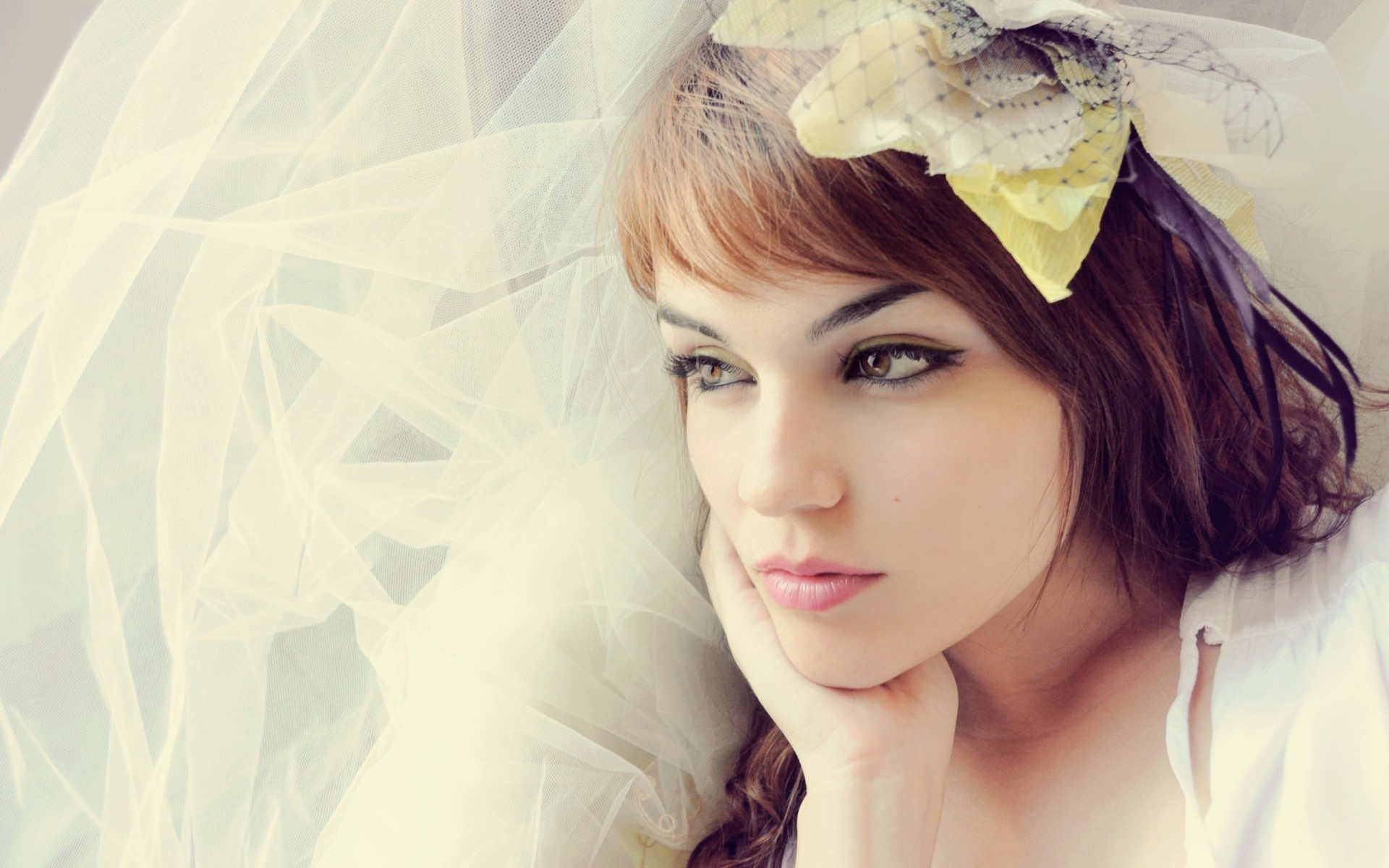 Fille avec une belle figure dans une robe pourpre posant sur la pelouse verte