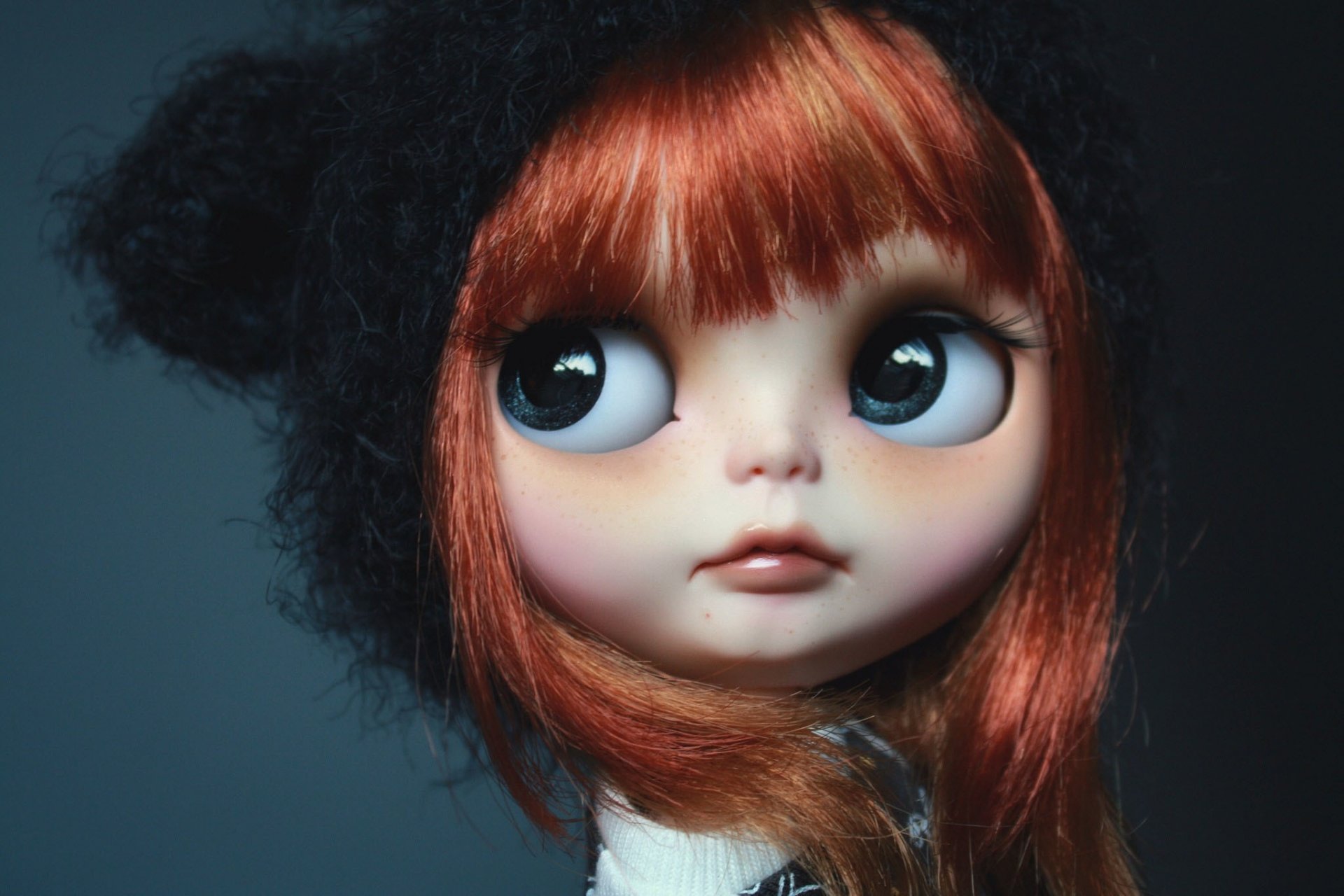 Rousse fille avec un profond décolleté se trouve sur l'herbeRousse fille avec un profond décolleté se trouve sur l'herbe
