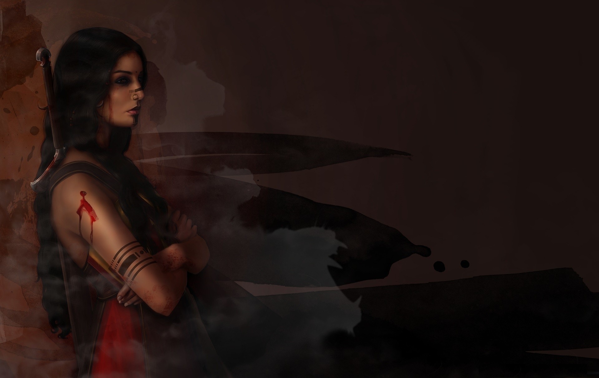 Fille en armure de samouraï avec une blessure sur la joueFille en armure de samouraï avec une blessure sur la joue