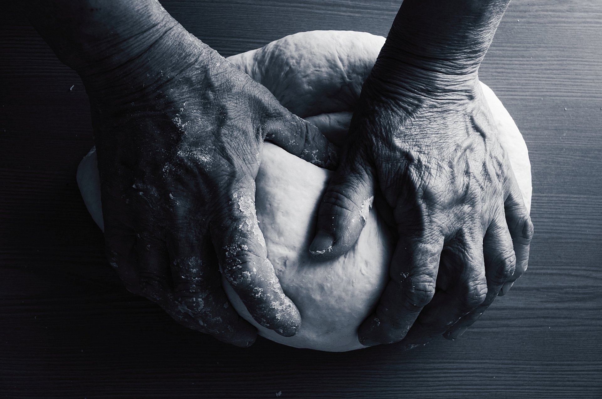 Champ d'automne de la Toscane, au loin les nuages se penchent bas sur le village