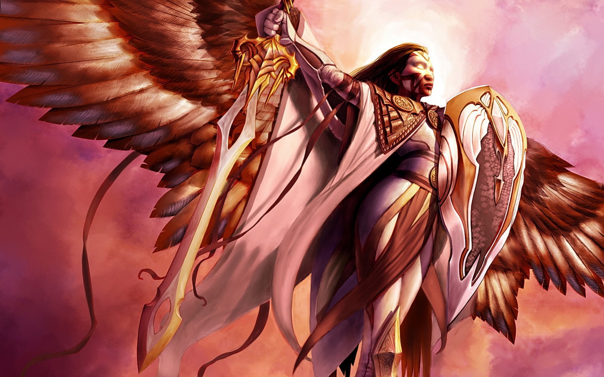 Image de fantaisie d'une fille avec des ailes et une épée dans les mains