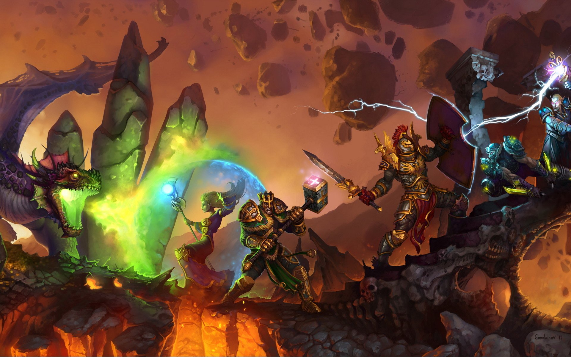 La bataille des mages, des chevaliers et des héros contre le dragon