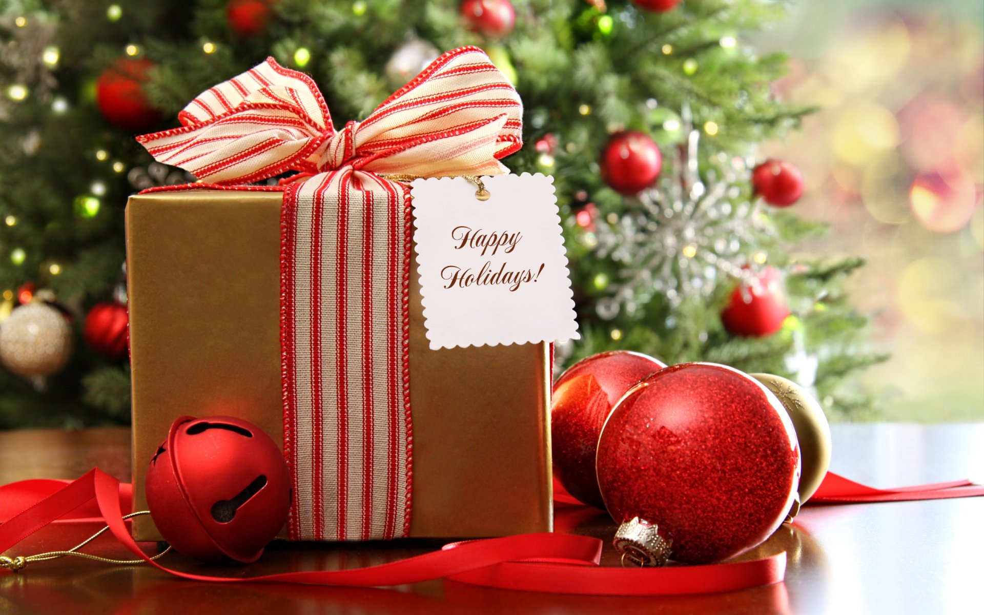 Boules de Noël et arbre de Noël sur fond rouge