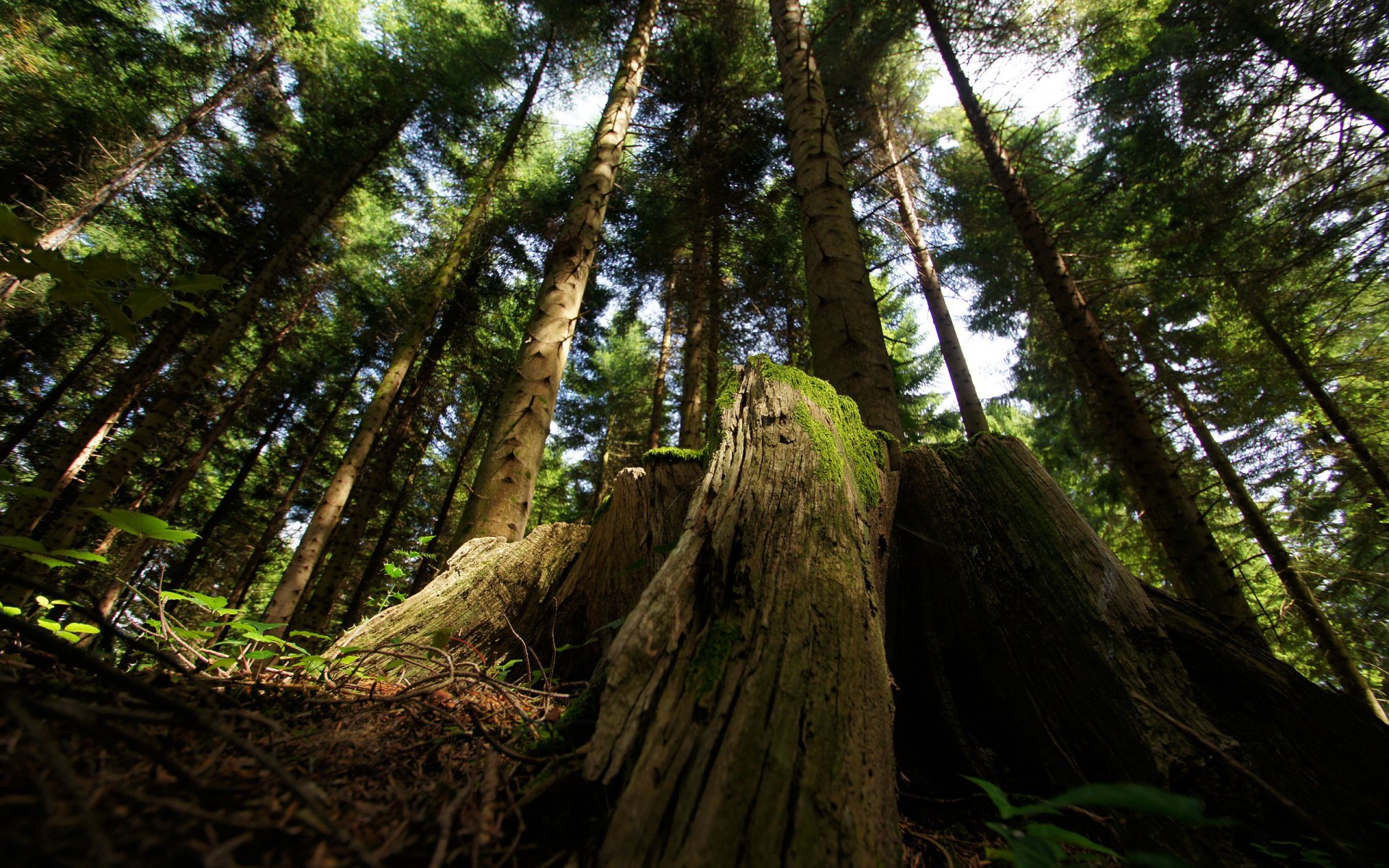 Arbres puissants sur fond de ciel bleu