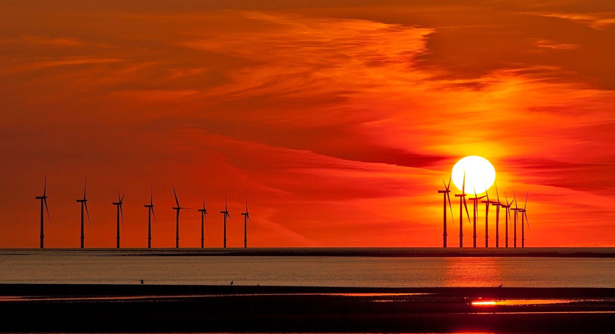 Moulins à vent et le soleil qui se couche derrière euxMoulins à vent et le soleil qui se couche derrière eux
