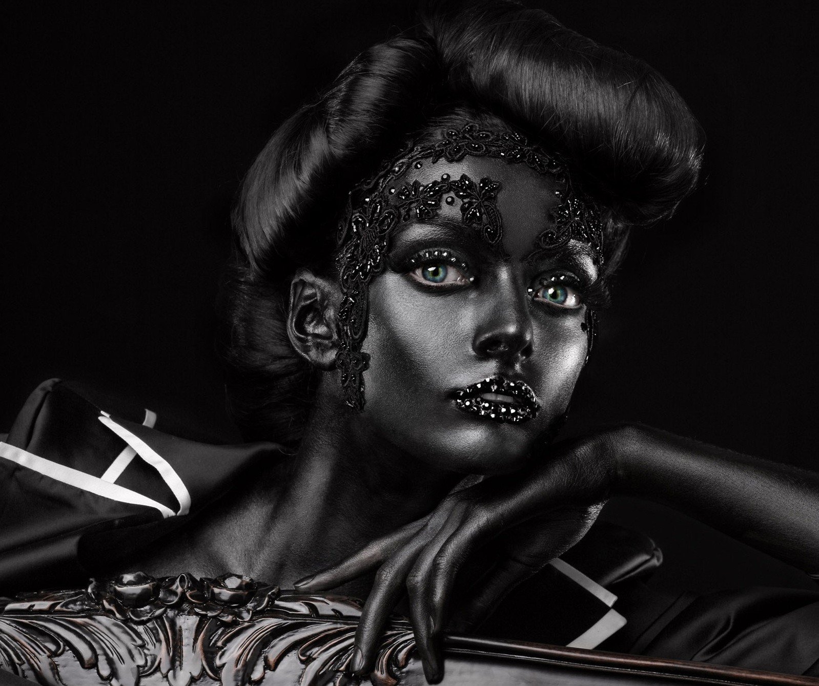 Fille dans les vêtements de couleur foncée maquillage noirFille dans les vêtements de couleur foncée maquillage noir