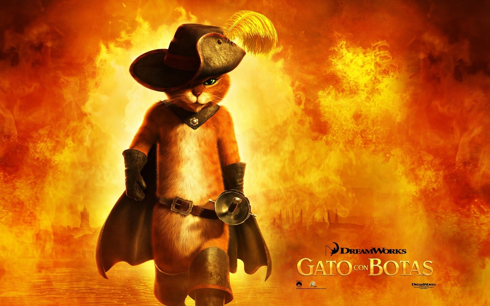 Chat de dessin animé sur fond de feu