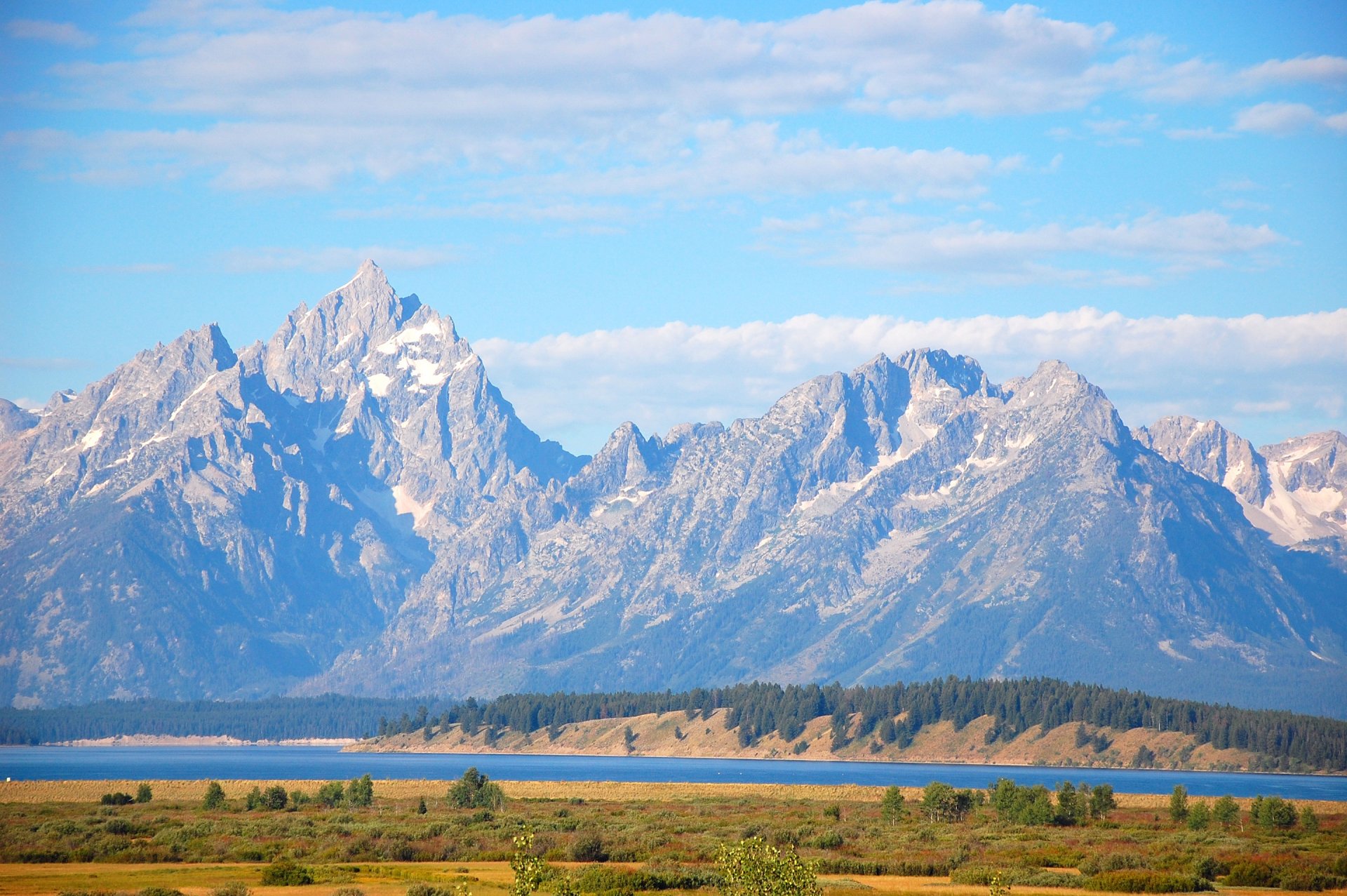 Paysage de montagne. Forêt ensoleillée et rivière