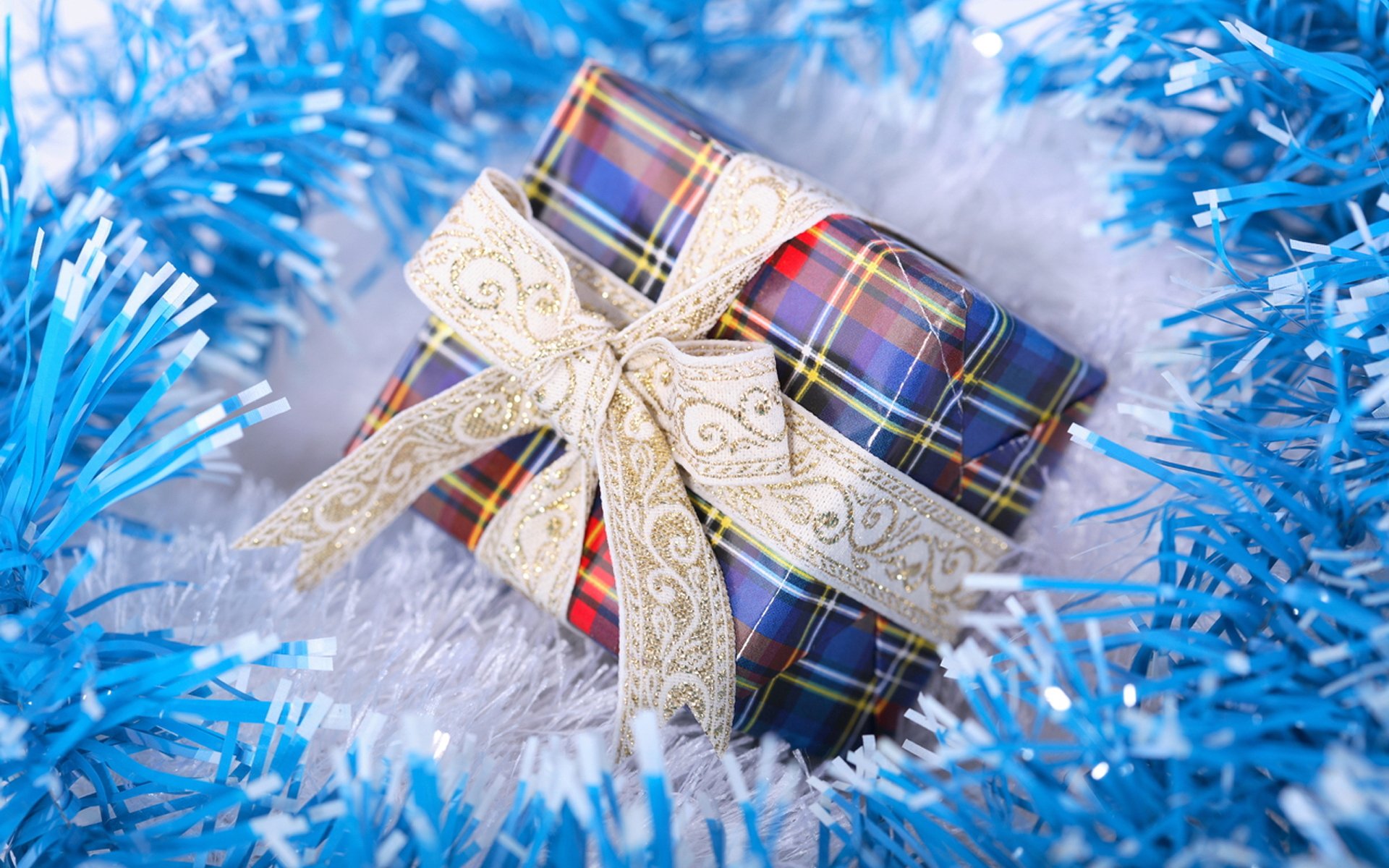 Cadeau du nouvel an sur un clinquant d'arbre de Noël