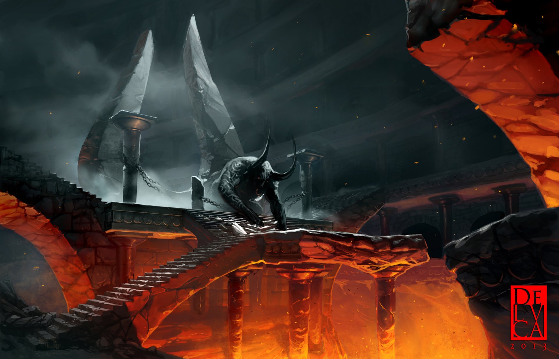 Le démon s'en prend à un guerrier. dans l'épée bat la foudreLe démon s'en prend à un guerrier. dans l'épée Bat la foudre