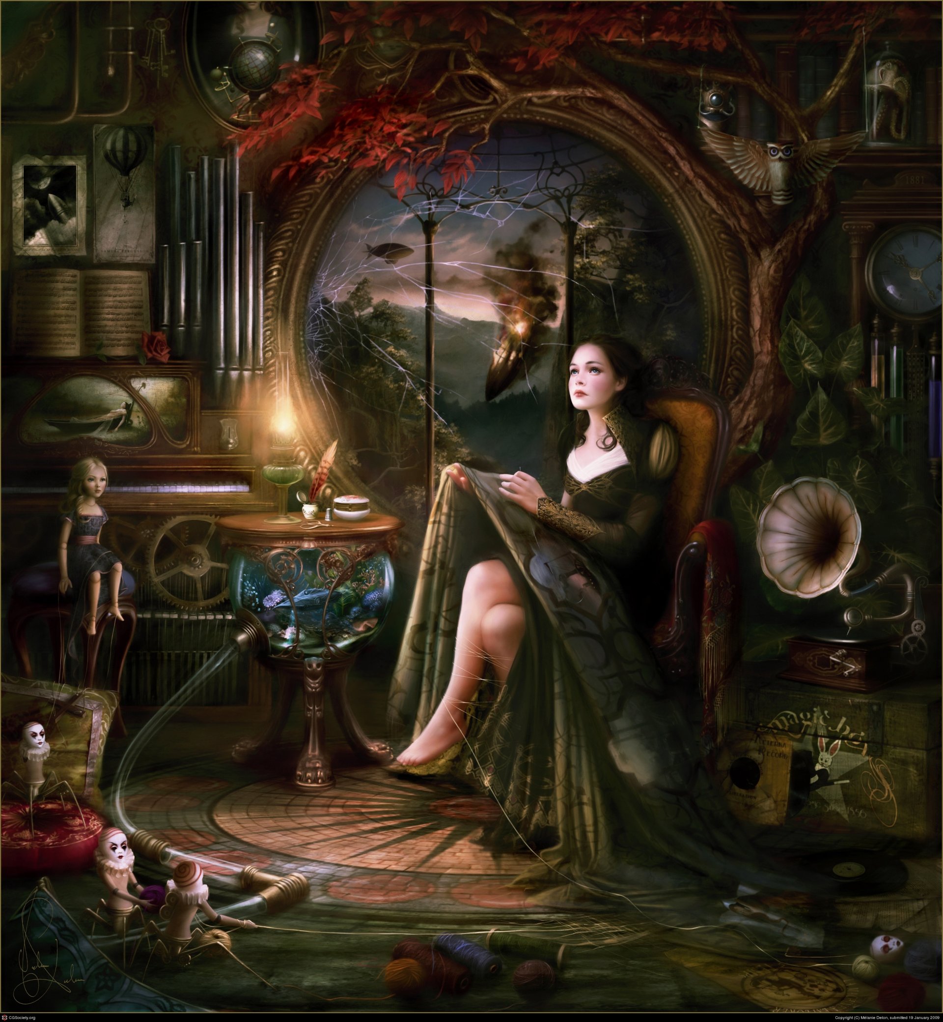 Filles dans le style anime sur une chaise longue sous un parapluieFilles dans le style anime sur une chaise longue sous un parapluie