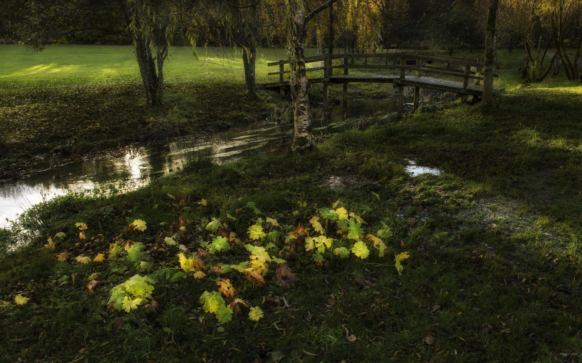 Modeste pont en bois sur un ruisseau étroit